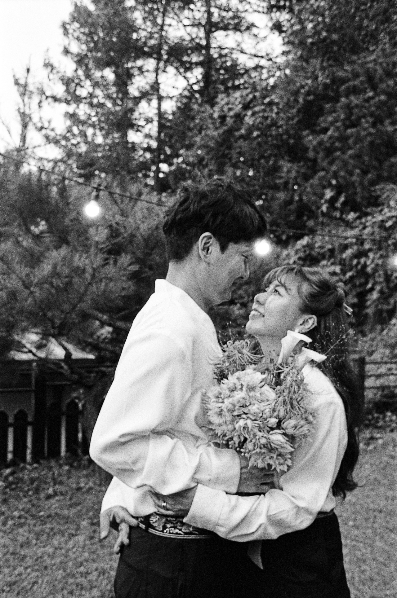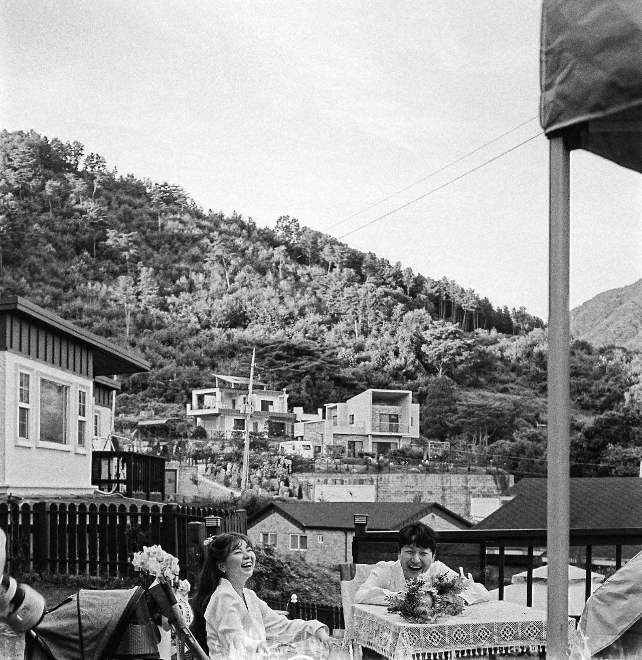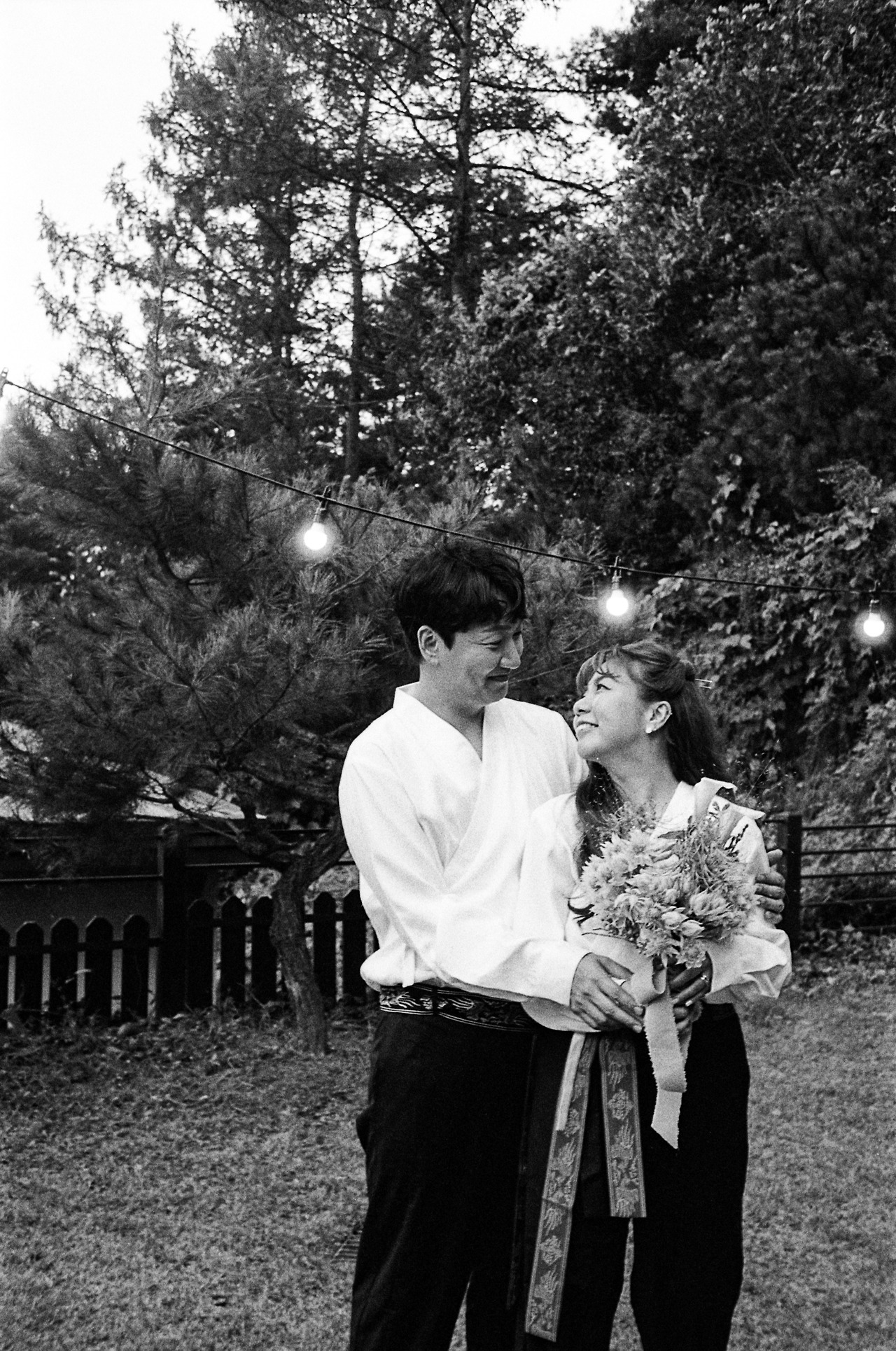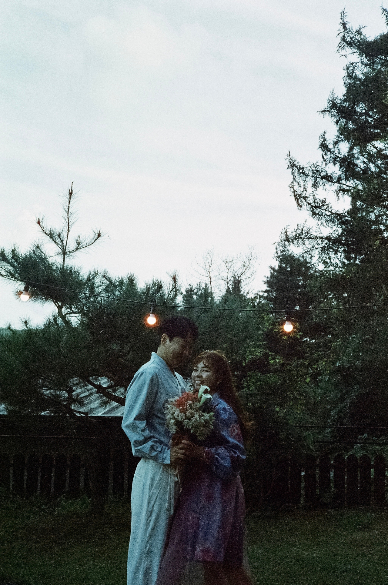 '남들 다 하는 거 하기 싫어병'이 극심한 저희 부부. 전형적인 웨딩드레스와 턱시도도 입지 않았어요. 왜 결혼식엔 흰색 드레스를 꼭 입어야 하는지도 모르겠고, 어차피 격식 없이 하는 거 의상도 저희 마음대로 했죠. 저는 자수가 새겨진 소라색 한복을, 남편도 그에 조화를 맞춘 컬러톤의 캐주얼한 한복으로 준비했습니다. 웨딩케이크 역시 하얀 생크림 케이크가 아닌, 이사 오기 전 제가 자주 가던 단골 케이크집에서 제 취향에 딱 맞춘 빈티지 케이크로 부탁했어요. 부케도 빈티지면 깜빡 죽는 제 취향을 익히 잘 아시는 단골 꽃집 사장님에게 의뢰하여 '이게 부케라고?' 싶은 유니크한 꽃들로 조합하여 제작했습니다. 사진과 영상이야말로 더더욱 저희답게 남기고 싶었기에, 친구찬스를 써서 가장 자연스럽고 우리 다운 편안한 웃음이 가득한 사진들을 남겼습니다. 특히, 필름사진을 취미로 찍는 절친이 남겨준 사진은 시선 하나하나에 저희 부부를 향한 응원의 마음이 느껴져서 너무나 고맙고 벅찬 행복을 가져다주는 대목 중 하나랍니다.