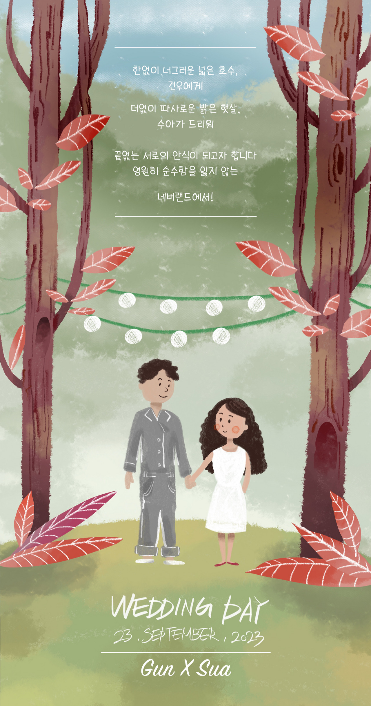 각설하고, 최근 저희 네버랜드의 가장 큰 이슈는 '마당 결혼식'이었습니다. 사실 저희는 알고 지낸 지만 곧 10년, 연인으로 4년, 혼인신고 3개월 차, 이미 서로 보우하며 잘 살고 있는 중에 결혼‘식’이라는 세리머니 그 자체는 저희 역사에 뭐 그리 대단한 큰 획은 아니었습니다만! 기념일을 늘리는 것에 의의를 두고 식을 올렸습니다. 일 년 동안 기념할 날이 많다는 건 살아가는 데 꽤 큰 힘이 되어주더라고요.