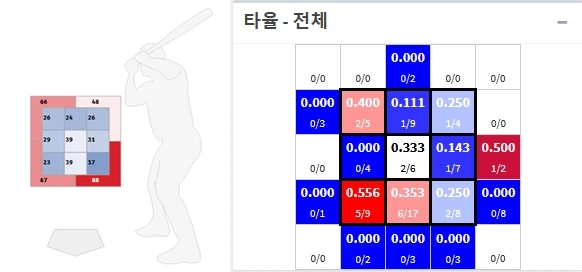 하지만 이는 추신수의 사례에서 확인할 수 있듯 아무런 문제가 되지 않는다. 텍사스 레인저스에서 뛰었던 2020시즌의 추신수는 몸쪽으로 파고드는 변화구에 대해 어려움을 겪었다. 하지만 SSG 랜더스에서 활약 중인 2021시즌의 추신수는 오히려 안쪽으로 파고드는 코스에 5할 5푼 6리의 타율로 매우 강한 모습을 보여줬다. 여러 이유가 있겠지만, 주된 요인은 KBO리그의 투수들이 MLB 투수들처럼 철저한 약점 공략을 해낼 수준이 안되기 때문일 것이다.