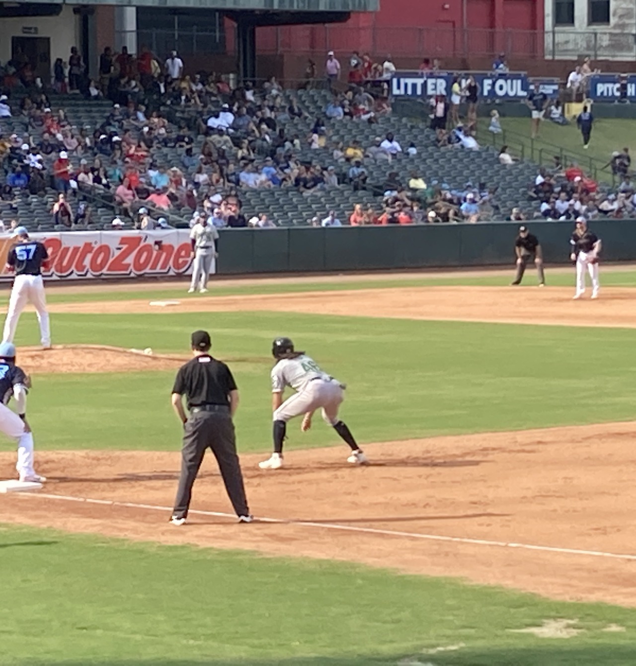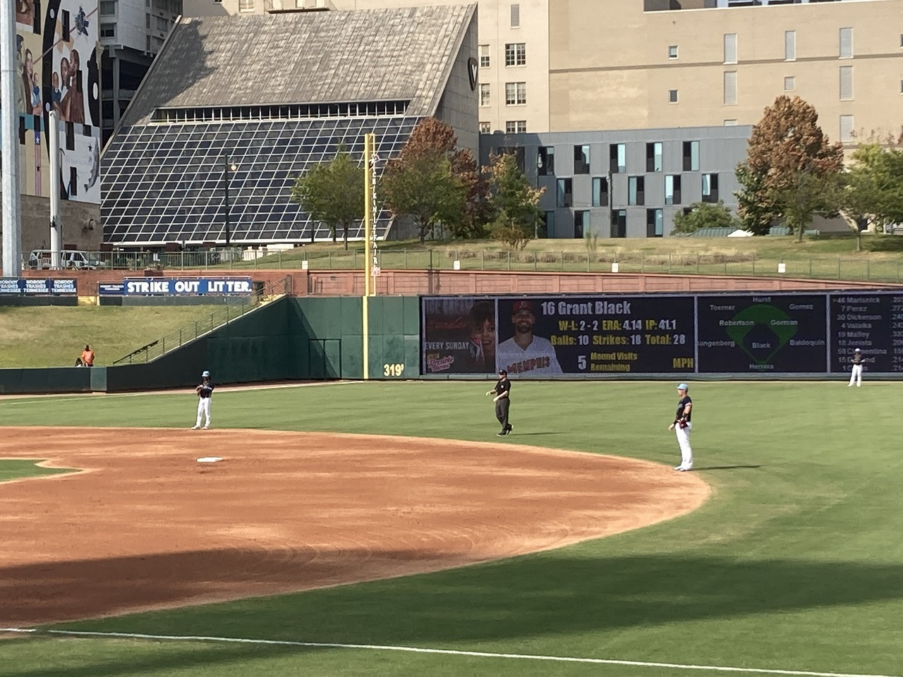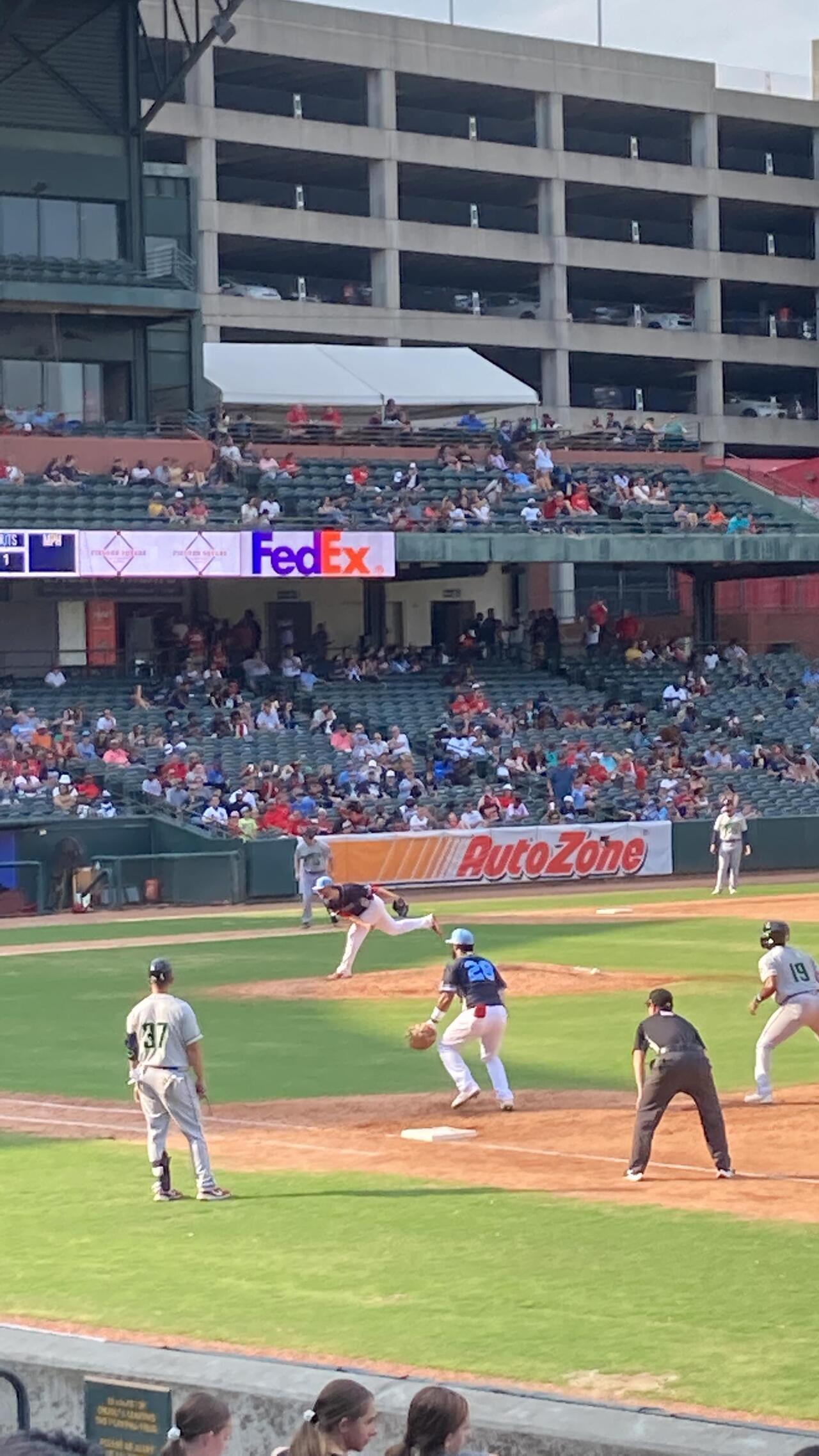 오토존 파크에는 여태 들렀던 마이너리그 야구장 중에서 유일하게 띠 전광판이 설치되어 있었다. 불량화소 투성이의 메인 전광판과 비교돼서 황당했다. 띠 전광판은 KBO리그 1군 구장 중에서도 미비된 곳이 적잖이 있을 정도의 고급 시설이다. 메이저리그 뺨치는 수준의 띠 전광판을 달았으면서, 대체 왜? 메인 전광판은 유지 보수조차 안 하고 방치하던 것인지?? 이해하기 어려웠다. 마이너리그의 세계는 참으로 심오하다.