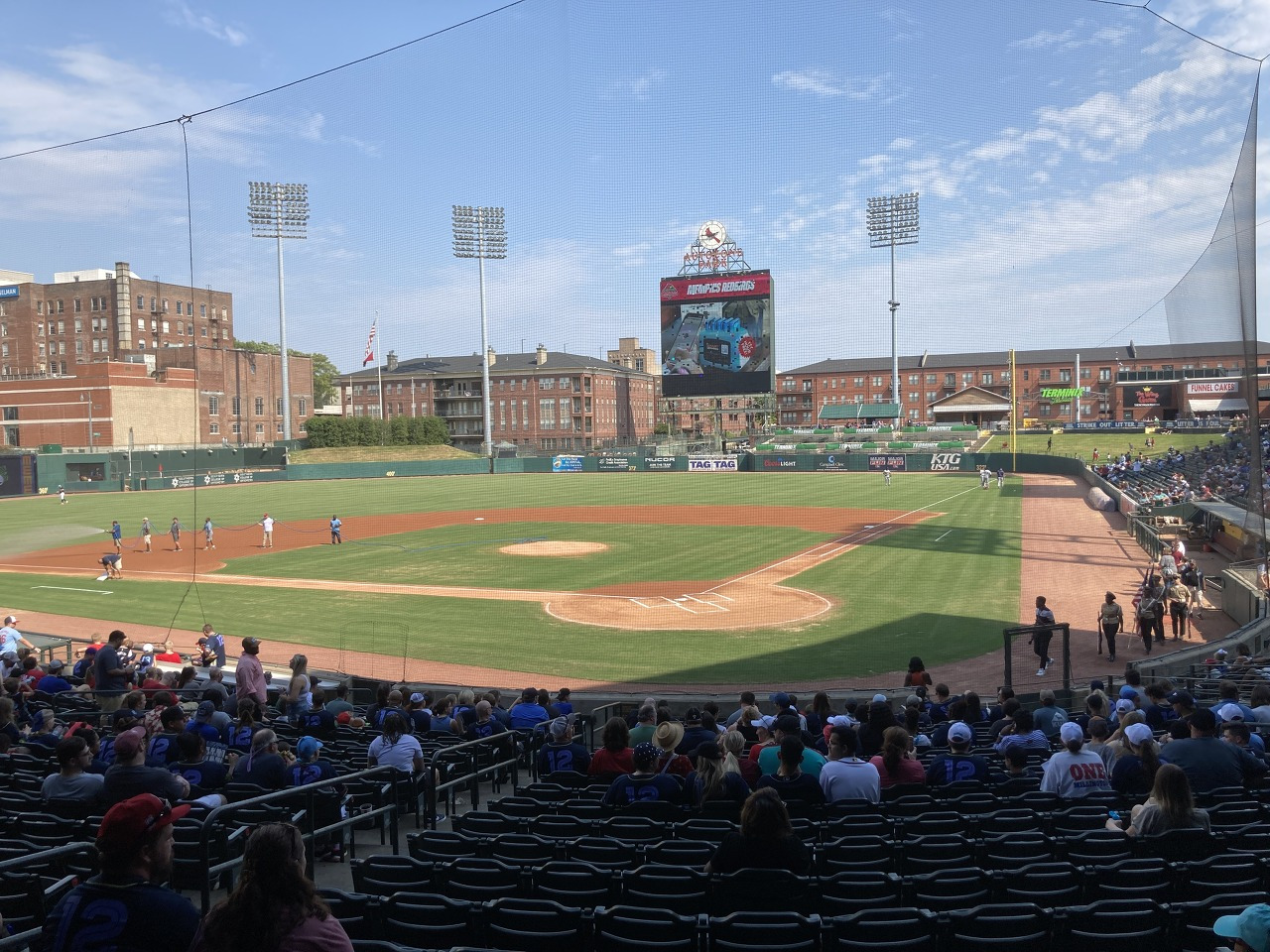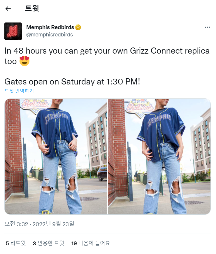 을 뻔했는데, 알고 보니 이날 선착순 5000명에게 테네시주 멤피스 연고 NBA 프로농구단 멤피스 그리즐리스와 콜라보한 유니폼을 뿌려서 많은 인파가 몰린 것이었다. 이날 경기의 가장 저렴한 티켓은 17달러였다. 멤피스 주민으로서는 발품만 조금 팔면 단돈 17달러에 야구 경기도 보고 연고지 농구팀 콜라보 유니폼까지 받는 셈이었다.