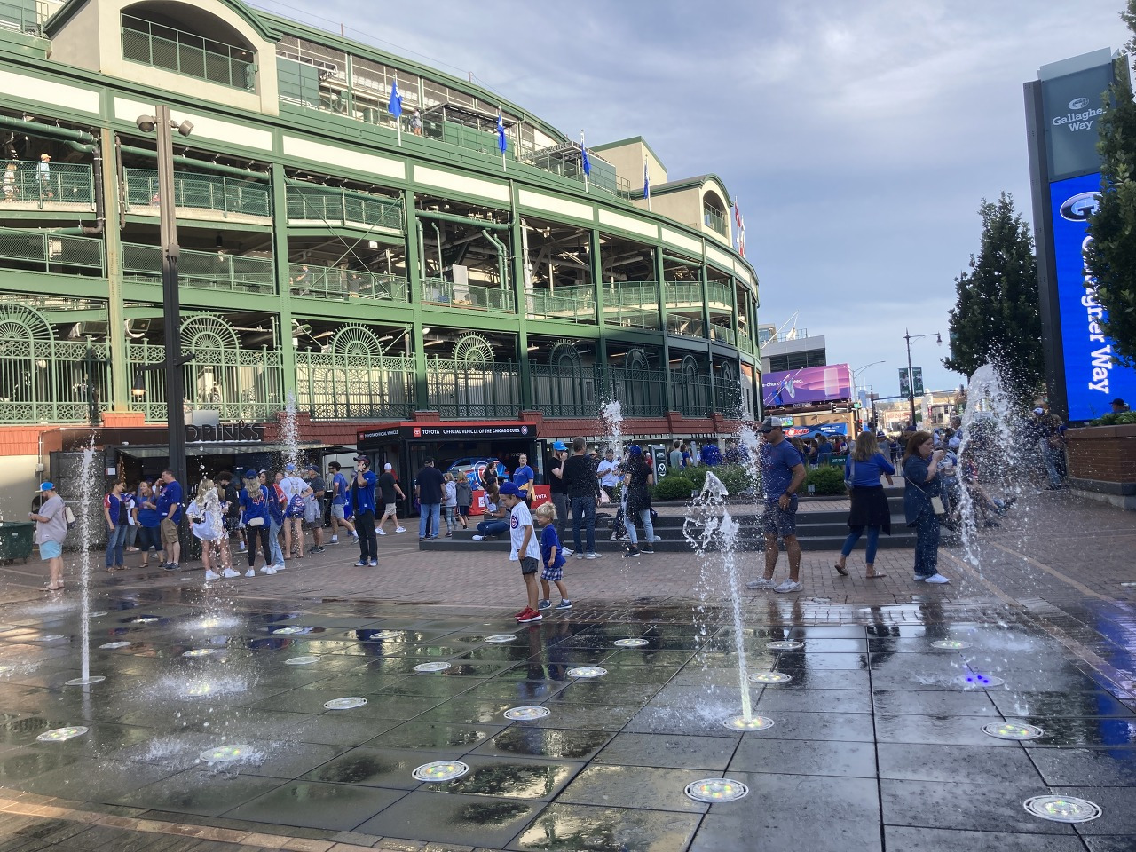 리글리 필드에는 티켓을 소지한 관중만이 입장할 수 있는 야외 편의시설이 마련되어 있다. 경기 시작 전 좀이 쑤셔 주체할 수 없는 어린이 팬들은 이곳에서 캐치볼과 물놀이를 즐기고, 성인 관중 역시 컵스 팬으로 성장 중인 자녀들을 흐뭇하게 바라보면서 음식을 먹으며 즐거운 시간을 보내고 있었다.