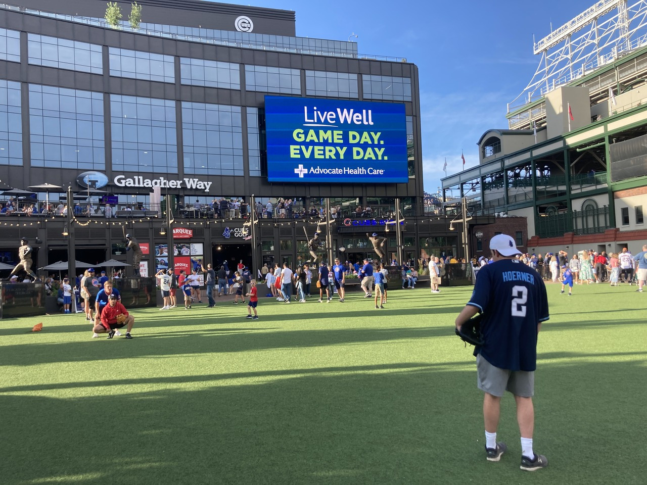 리글리 필드가 개런티드 레이트 필드와 비교했을 때 가장 다른 부분 중 하나는 바로 야구장 밖에서도 야구를 즐길 수 있는 공간의 유무였다.