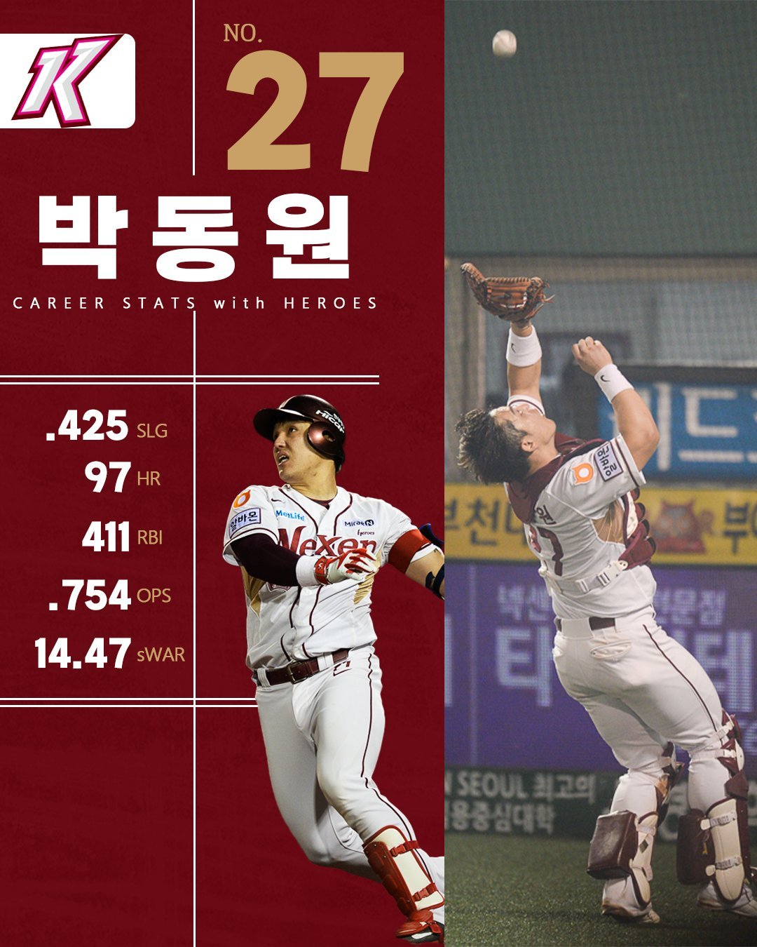 박동원은 키움 히어로즈 역대 최고의 포수다. 박동원은 22년까지 키움 유니폼을 입은 포수 16명이 기록한 홈런(35개)보다 2.8배 많은 타구(97개)를 담장 밖으로 넘겼다. 키움 포수로서는 최초로 단일 시즌 5홈런·두 자릿수 홈런·20홈런 고지를 밟기도 했다.