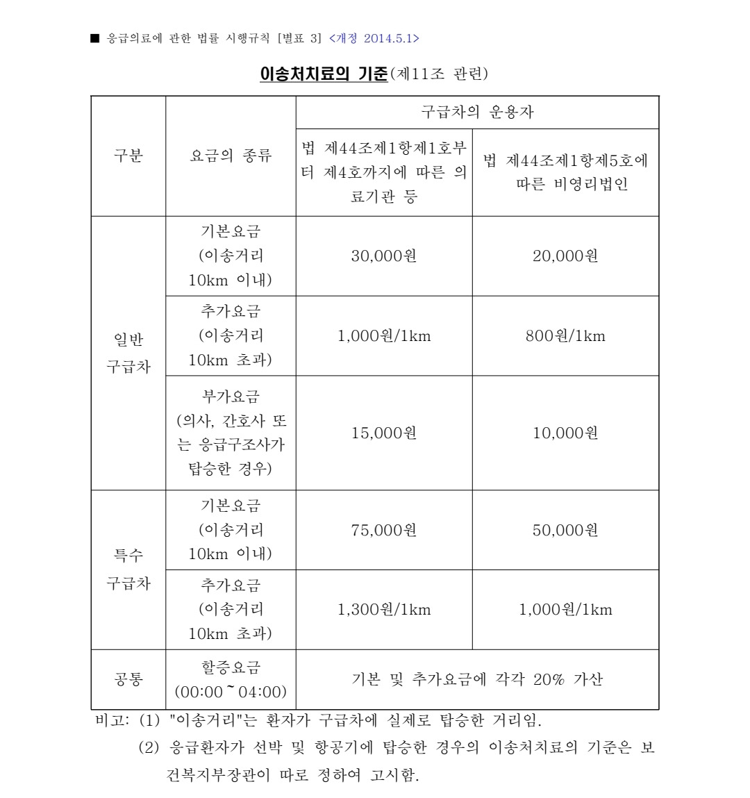 사설 구급차 비용에 대한 법적 기준