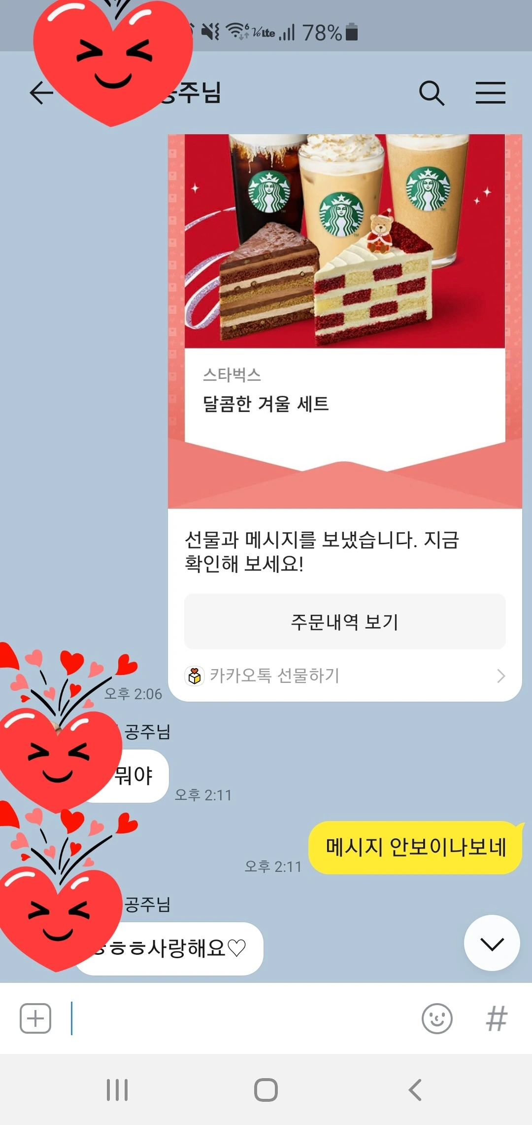 어제 아내는 모더나 2차 접종을 했다. 1차 접종 때 조금 어지러웠지만 다른 부작용은 없었다. 오히려 2차 접종 부작용이 심하다는 경험담을 읽고 걱정이 되었다. 접종 후 며칠 동안 두통과 근육통으로 고생했던 기억 때문에 걱정이 커진 것 같았다. 회사에서 도움을 줄수가 없어서 고민하다가 스타벅스 기프티콘을 검색했다. 종류가 너무 많았다. 일단 아메리카노를 제외하고 달달한 세트 메뉴 중에서 달콤한 겨울 세트를 선택했다. 아내가 접종하러 가는 시간에 맞춰서 카톡으로 보냈다. '접종하고 집에 가는 길에 당충전하세요~ 부작용 없으면 좋겠어요~'라는 메시지도 동봉했다.