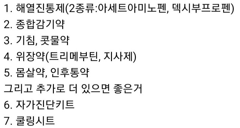 코로나 상비약 리스트