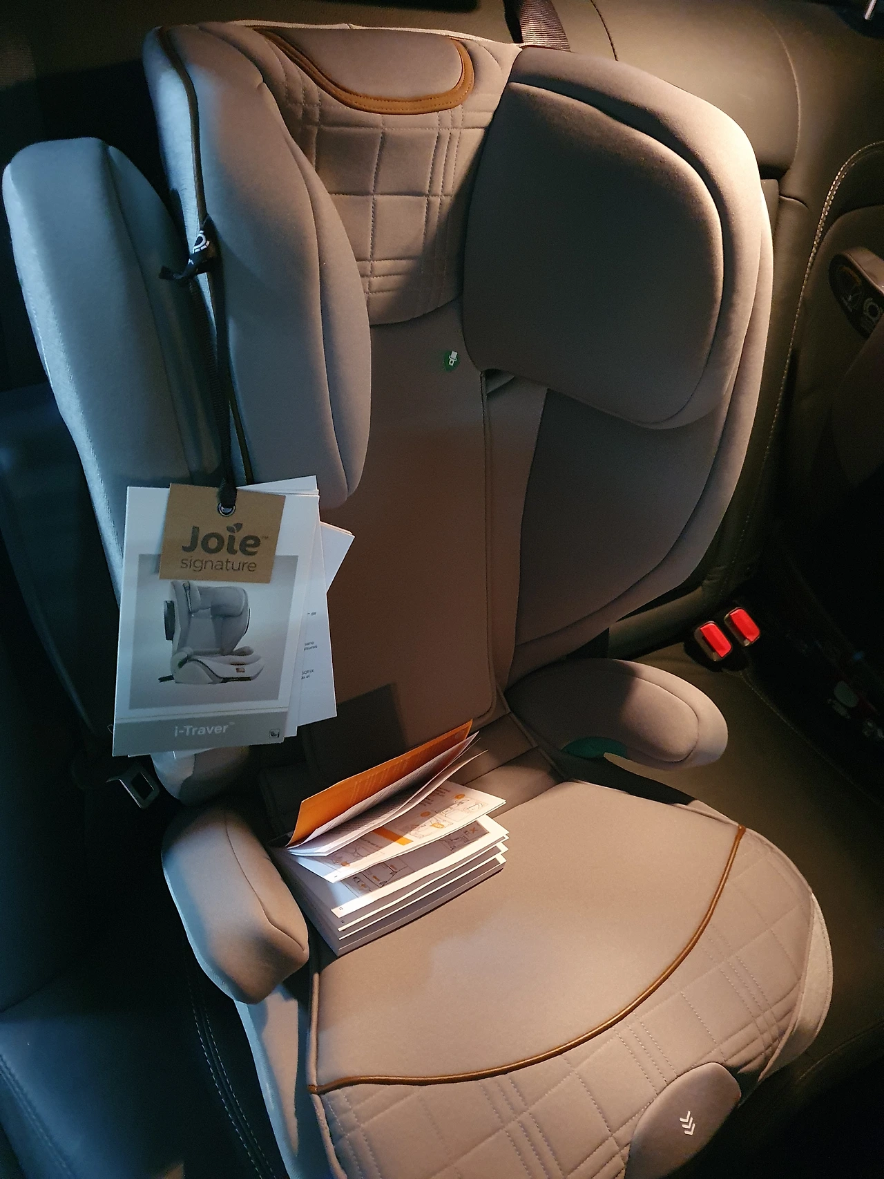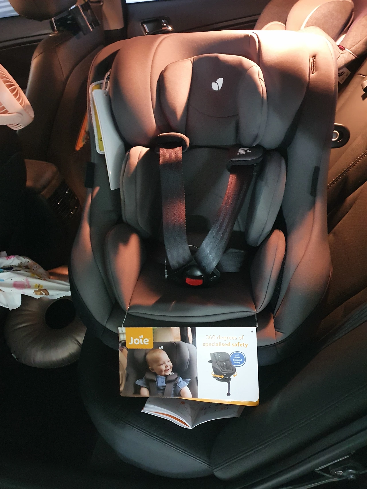 좌: 조이 아이트레버 (Joie I-Traver) 주니어 카시트, 우: 조이 스핀 360 (Joie Spin 360) 회전형 유아 카시트