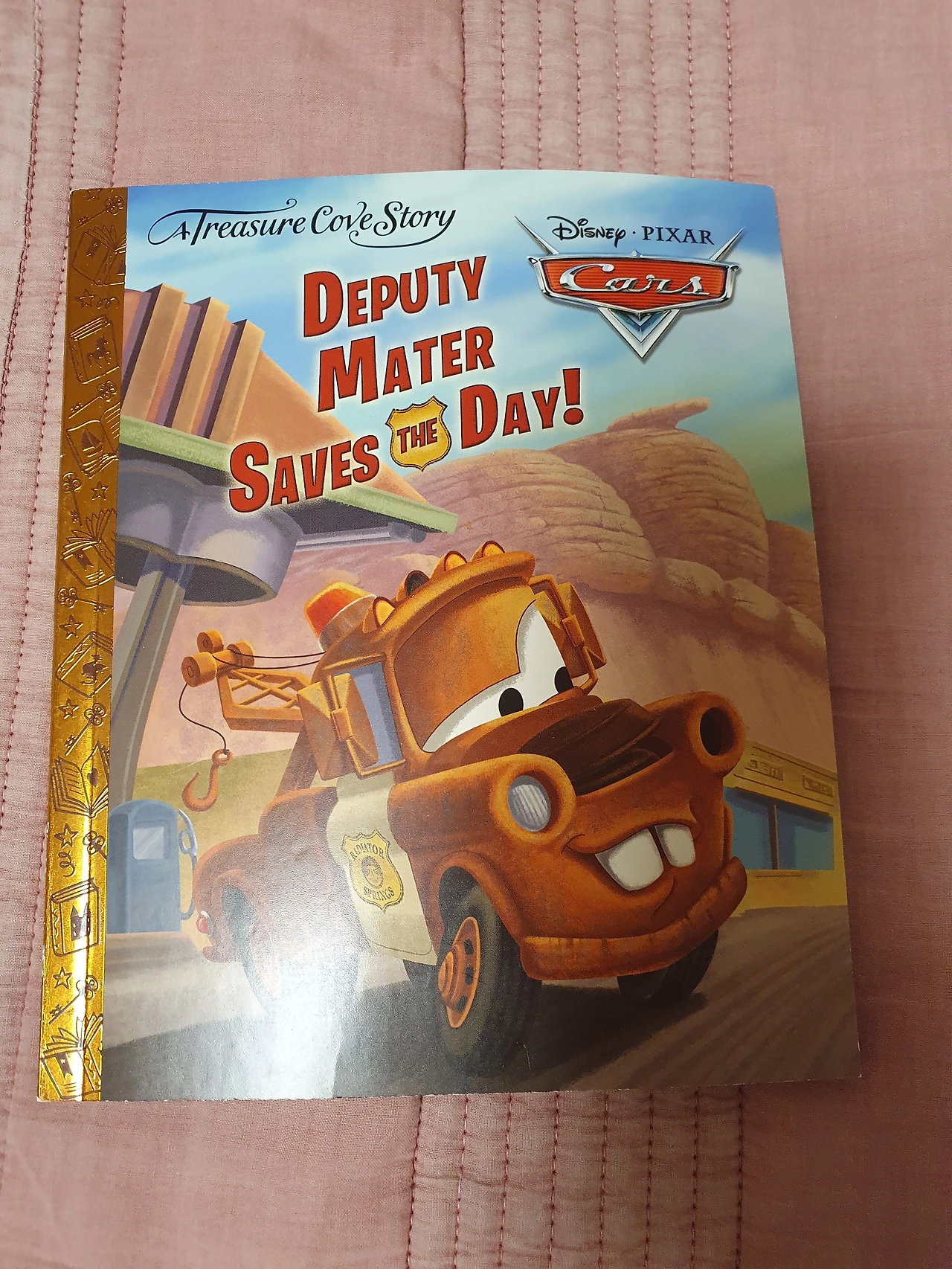 첫째와 메이터 스핀오프를 읽었다. 어느날 아침에 핫로드가 마을에서 신호를 무시하고 폭주했다. 핫로드는 미국에서 마피아의 고성능 도난차량에서 유래한 튜닝카를 지칭한다.핫로드를 따라잡을 수 없었던 보안관은 도움이 필요했다. 때마침 레슬러 챔피언, 곡예 비행, 시간 여행, 달 탐사선 구조, 등 다양한 임무를 수행했던 견인차 메이터가 등장한다. 그는 정비소의 실수로 경찰차처럼 녹슨 문을 흰색으로 도색했다. 그렇게 메이터는 보안관보로 임명된다. 마을의 교차로에서 메이터는 핫로드에게 다음에는 교통 딱지를 부과한다고 천천히 안전하게 운전하라고 경고했다. 의외로 핫로드는 도로번호를 제한속도로 오해했다고 앞으로는 안전하게 운전하겠다고 대답했다.부모가 안전 운전을 하더라도 핫로드 같은 운전자 때문에 교통 사고는 발생할 수 있다. 도로교통공단에 따르면 안전띠를 착용하지 않을 경우에 어린이 사망률이 3.6배나 높았다. 카시트는 필수다. 과태료 6만원이 아니더라도 카시트를 설치하지 않을 부모는 없을 것이다.