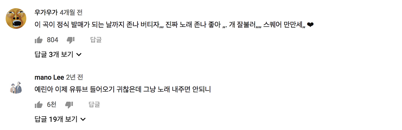 가수 백예린 씨의 미발매곡 square에 대한 반응. 사람들은 이 곡을 듣기 위해 유튜브로 들어온다.