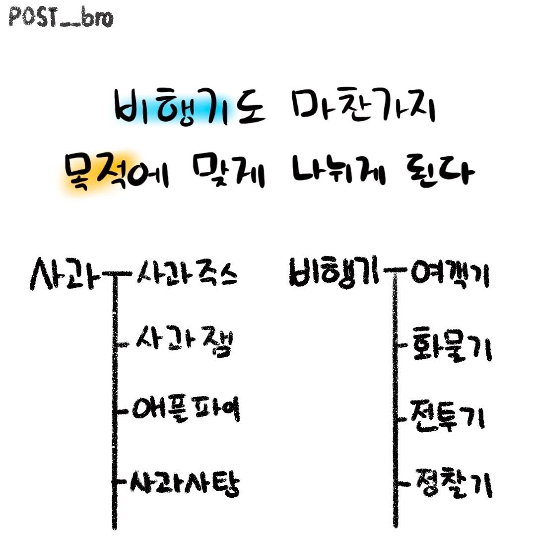다양하고 각기 다르게 생겼지만 결국 하나의 비행기라고 생각하면 된다.
