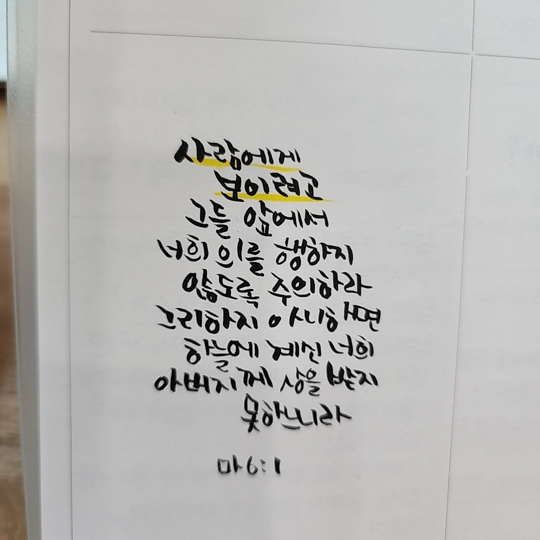 말씀은 캘리 쓰는 습관에 덧 붙이면서 어떻게든 습관 만들기 쉽겠는데.. 기도의 습관... 기도의 처소가 가까워야 하는데.. 집을 처소로 만드는 게 나에겐 낯설고 편안하진 않다.. 고민해 봐야겠다.