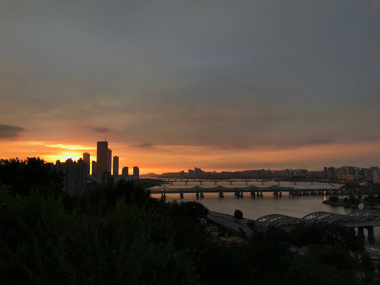 본동 용양봉저정공원에서 내려다본 노을진 한강
