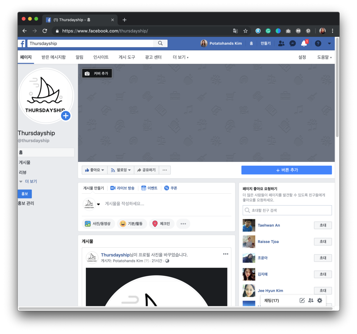 메인 모티브들은 각 소셜미디어 계정(https://www.instagram.com/thursdayship/ , https://www.facebook.com/thursdayship/)에 적용해 보았다.