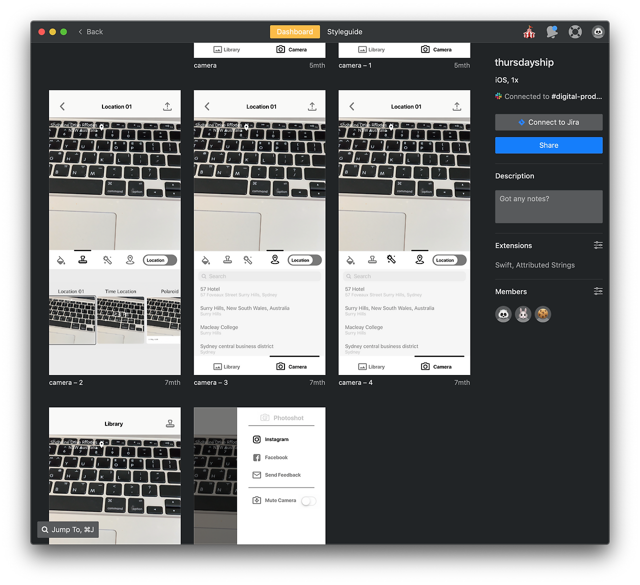 장소 변경에 대한 부분도 디자인은 된 상태인데 다들 팀원분들이 주업이 있으시다보니 시간이 조금 걸리기도 한답니다. 디자인은 주로 어도비 XD로 하고 디자인 공유는 Zeplin을 통해 하고 있습니다.