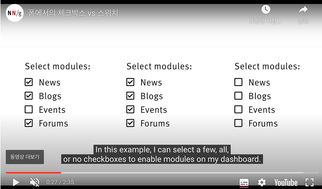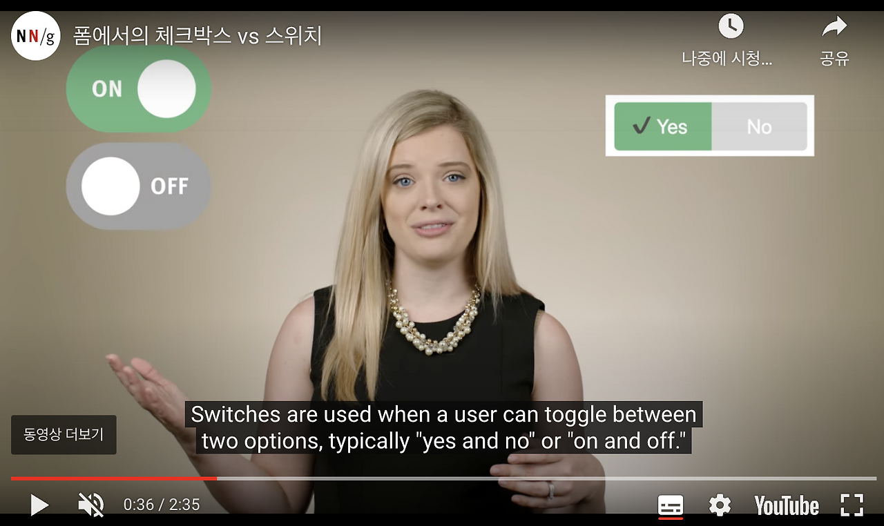 폼의 역할에 따라 체크박스나 스위치 적절하게 사용해야 한다.