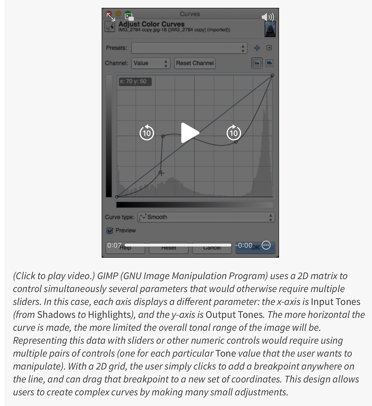 이 문제를 해결하는 전형적인 방법은 각각 링크 컨트롤을 같은 값을 조정할 수 있도록 사용하는 것이다. 링크 컨트롤은 두개이거나 더 많을 수도 있는 조작방법으로 하나의 값을 조정할 수 있다. 전형적으로 연속적인 컨트롤러 예를 들어 슬라이더를 이용하는 것은 거친 입력값을 조정 할 수 있고 조정 할 수 있는 값의 범위를 쉽게 탐색 할 수 있다. 원하는 값을 찾을 수 있도록 대략적으로 조정해볼 수 있다. 세밀한 컨트롤은 숙련된 사용자들이 이미 정확한 값을 알고 적용하고 싶을때 사용할 수 있다. 지금 보여지고 있는 값이 얼마인지 숫자로 표기되고 정확한 숫자를 입력해서 값을 조정 할 수 있다.