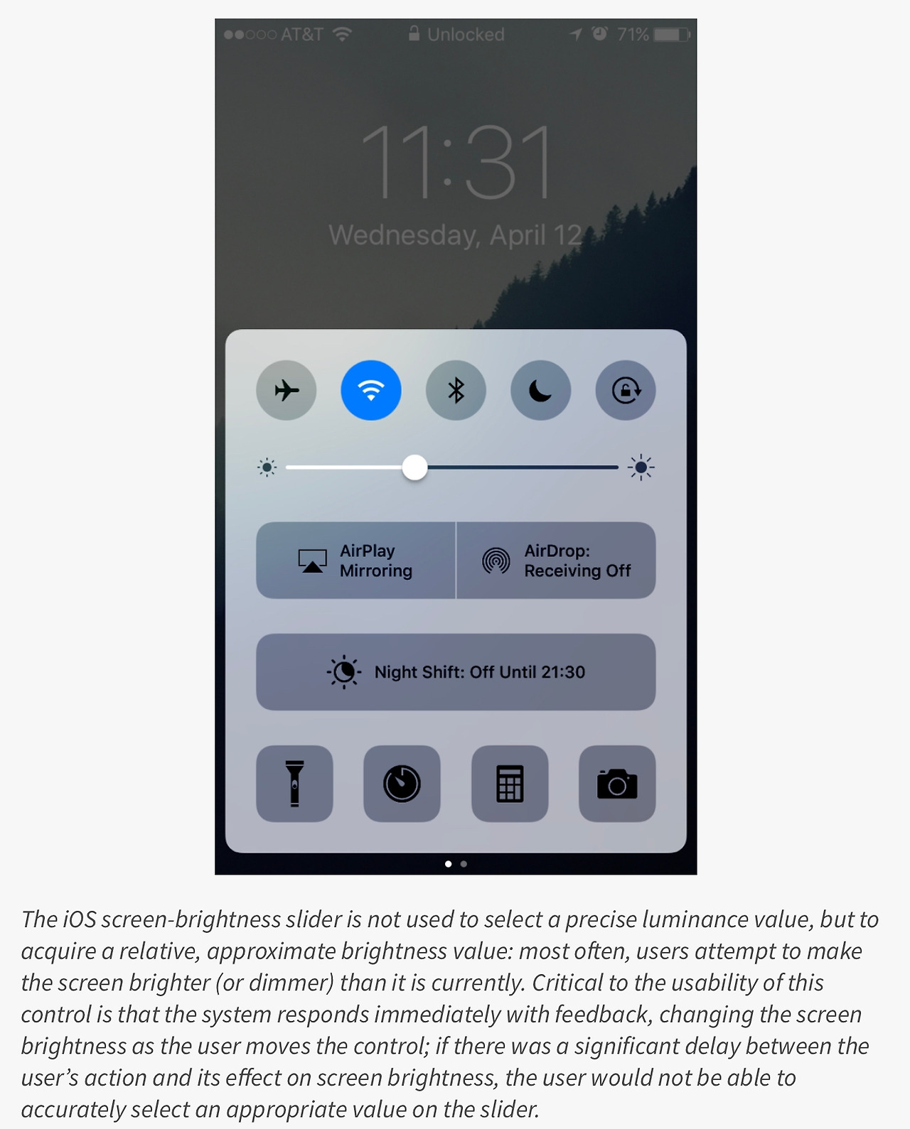 슬라이더는 사용자가 실시간으로 적용되는 반응을 보며 조정하는데 효과적이다.만약에 실시간 반응이 반영되지 않고 사용자의 행동과 효과 적용에 지연이 생긴다면 이것은 좋은 선택이 아니다. standard response-time guidelines 에 따르면 사용자가 실시간으로 느끼는데 걸리는 시간은 0.1초이하이다. 예를 들어서 슬라이더가 비디오 이팩트 조정같이 복잡한 조작을 요구하는 곳에 적용된다면 렌더하는 시간 때문에 실시간으로 반영되지 않고 로딩하는 시간이 걸리므로 좋은 선택이라고 할 수 없다.