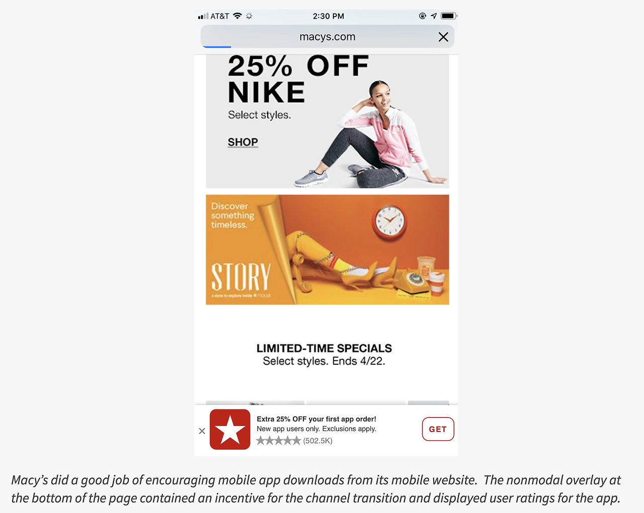 서비스 제공자 입장에서는 앱을 다운로드 하도록 독려하는 것이 당연하겠지만 모달 오버레이는 당신의 앱다운로드를 위한 광고효과로써는 올바른 접근이 아니다. 심지어 사용자가 당신의 앱을 이미 갖고 있을 경우 채널을 이동해서 다시 처음부터 작업을 다시 실행해야한다면 더 번거롭게 만들 뿐이다. 모달 오버레이는 귀찮게 만들 뿐이다.
