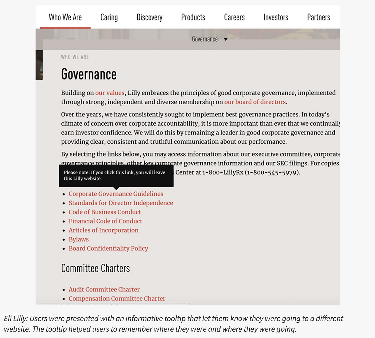 7. 사용자가 새로운 하위 메뉴 또는 사이트를 벗어나려고 할 때 모달뷰를 보여주는 것 : 몇몇의 기업 웹사이트들에는 콘텐츠 또는 앱으로 접근하는데 하위 메뉴 또는 외부 사이트로 링크가 연결되어 있다. 사용자가 메인 사이트를 떠나기 전에 모달 오버레이 팝업을 보여주고 사이트를 떠나는 트랜지션에 대해서 알려주는 것은 문제가 있는 팝업 타입이다. 너무 과하게 트랜지션을 강조하게 되어서 사용자가 오히려 헷갈릴 수 있기 때문이고 특히 단순히 새로운 탭을 열려고 한 것인데도 이런 팝업이 뜨면 왜 이런 팝업이 뜨는지 이해하기 어렵기 때문이다.