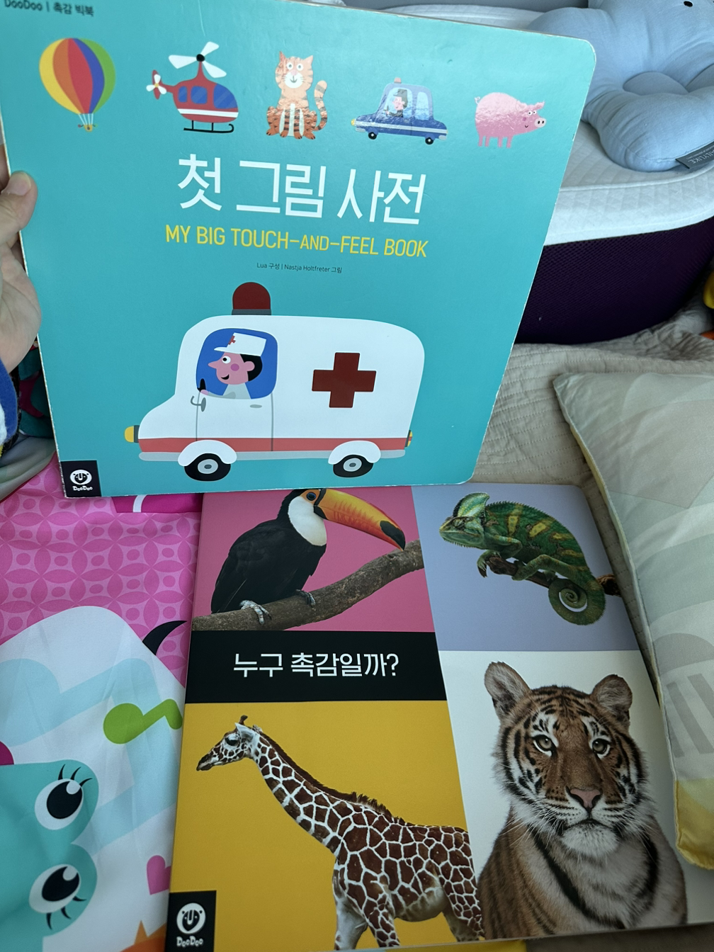 큰책으로 4-5권을 반복해서 읽어주고 보여주고 있다. 보면서 내가 이야기해주면 나의 말에 반응을 하는 것처럼 옹알이를 한다.