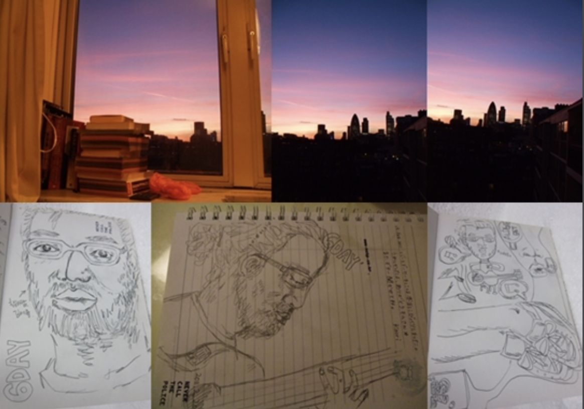 그러던 어느 날 기타 치는 김씨, 그림 그리는 나, 그리고 사진 찍은 함씨언니 이렇게 셋이 숙소 거실에 모여 기타를 연주하면 나는 그 모습을 그려주기로 했었다. 그때 잘 그리는지와 잘 연주하는 지, 사진을 얼마나 잘찍는 지는 중요하지 않았다. 서툰 실력으로라도 예술을 공유한다는 것이 얼마나 우리의 삶을 풍요롭게 해주는지 런던의 공기가 잠시 한국보다 더 나에게 고향처럼 느껴졌다.