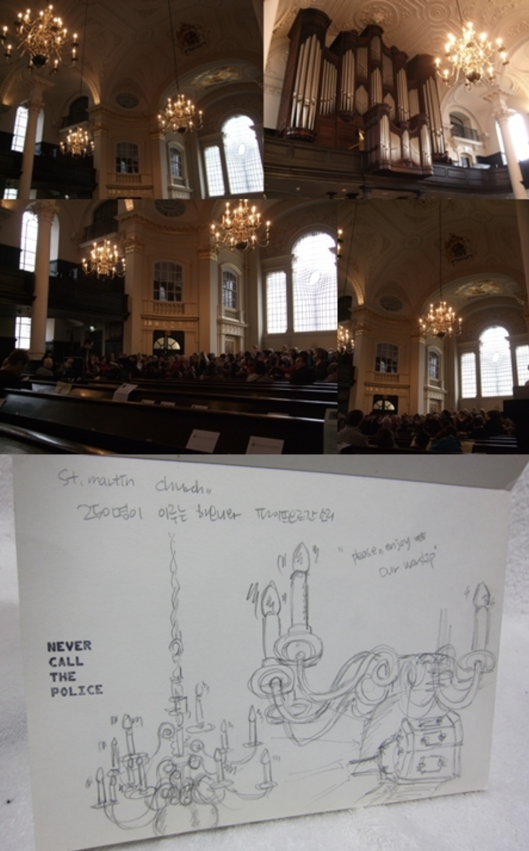 교회이지만 성당의 양식과 비슷하여 그 모습은 정말 아름다웠다. 청개구리 심보인지 돈 내고 들어가는 웨스터민스터 사원에는 정작 들어가보지 못하고 돈을 내지 않고 기부하라는 옆 교회에는 기부를 하고 구경을 했다.