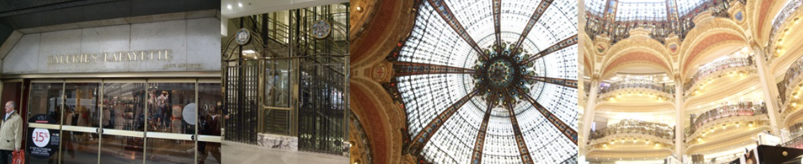 프랑스 파리 9구 오스만 거리(Boulevard Haussmann)에 위치하고 있는 초대형 백화점이다. 파리에서 가장 규모가 큰 백화점으로 유명하며 세계 곳곳에 지점을 가지고 있다. 한국인 관광객들을 위해 한국말 팸플릿이 있어서 오랫만에 보는 한글 팜플렛 디자인이 반가웠다. 런던에서 가장 유명하다는 헤로드 백화점에 비하면 이곳의 화려함은 다른 분야의 화려함이었다. 또 다시 한번 파리도시의 양면색종이 중 앞면의 금장식이 이렇게 발휘되면 이런 화려함을 보여줄 수 있구나 느끼게된 곳이었다.