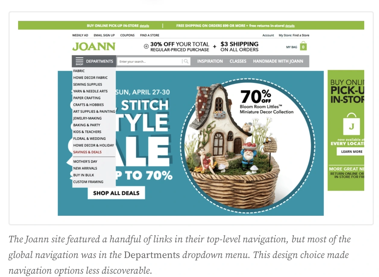 사이트의 최상위 카테고리를 숨기면 사용자 성공에 부정적인 영향을 미칠 수 있다.