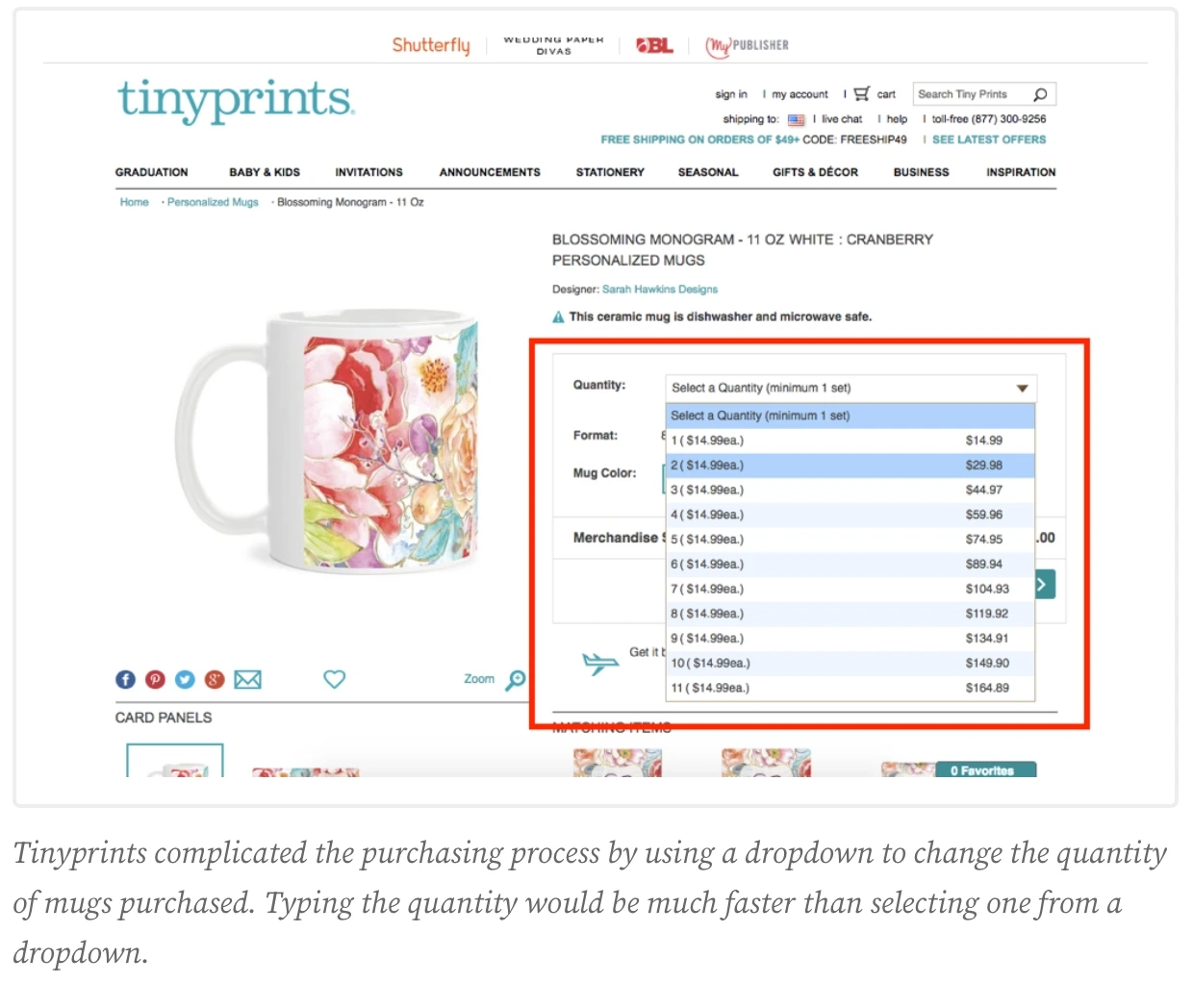 (이는 우리가 관찰한 체크아웃 폼에서 주 드롭다운 사용 시 발생하는 오류가 많았기 때문에, 전자상거래 사용성 지침 중 하나로 포함된 사례이다.)