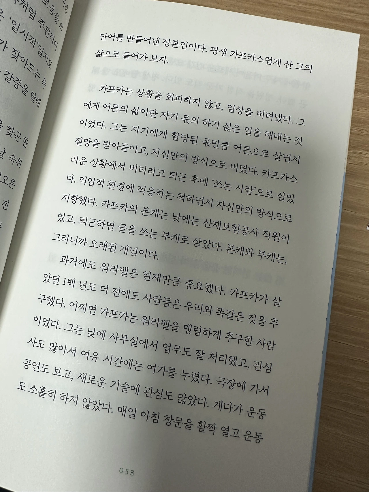 카프카가 낮에는 산재보험회사의 직원이었던 점이 흥미로웠다. 예술가로써 하고 싶은 것만 하고 살고 싶었지만 글로 벌이가 안되어 직장생활을 하는 현대인의 작가 지망생들과 비슷하다.
