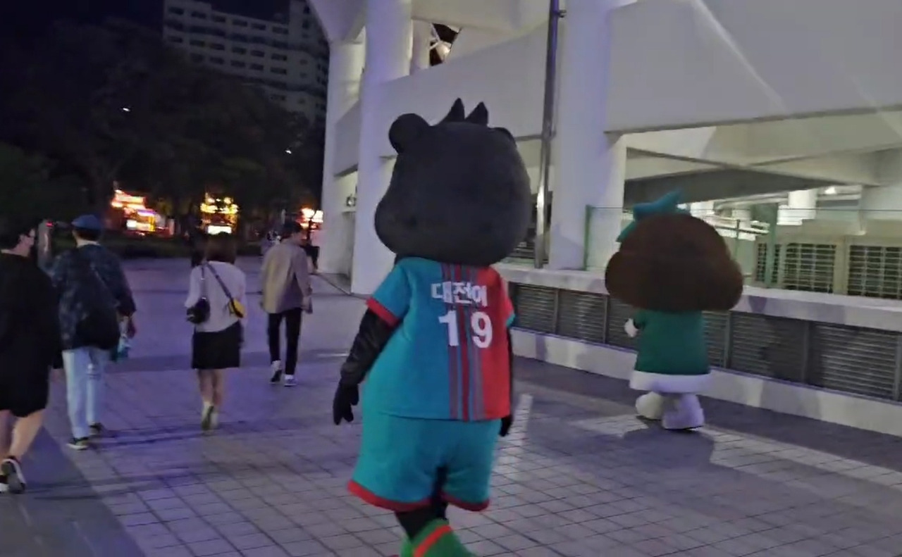반대로 이런 환경의 중요성을 안다면 내가 지금 처한 상황과 분위기를 어떻게 조성할지도 굉장한 핵심포인트라 생각해본다. 경기가 끝나고 다같이 퇴장해 막힐 것을 우려해 우리 일행은 끝나기 3분전에 발걸음을 옮겼다. 그러다가 우연히 대전 경기장의 마스코트들이 나란히 줄지어서 곧 출입구로 나가는 사람들을 기다리려 이동하는 것을 보며 오늘 경기의 패배때문에 실망한 건지 아니면 더운 날씨에 지친 것인지 몰랐지만 상당히 귀여웠다.