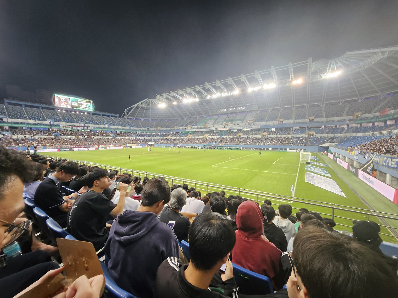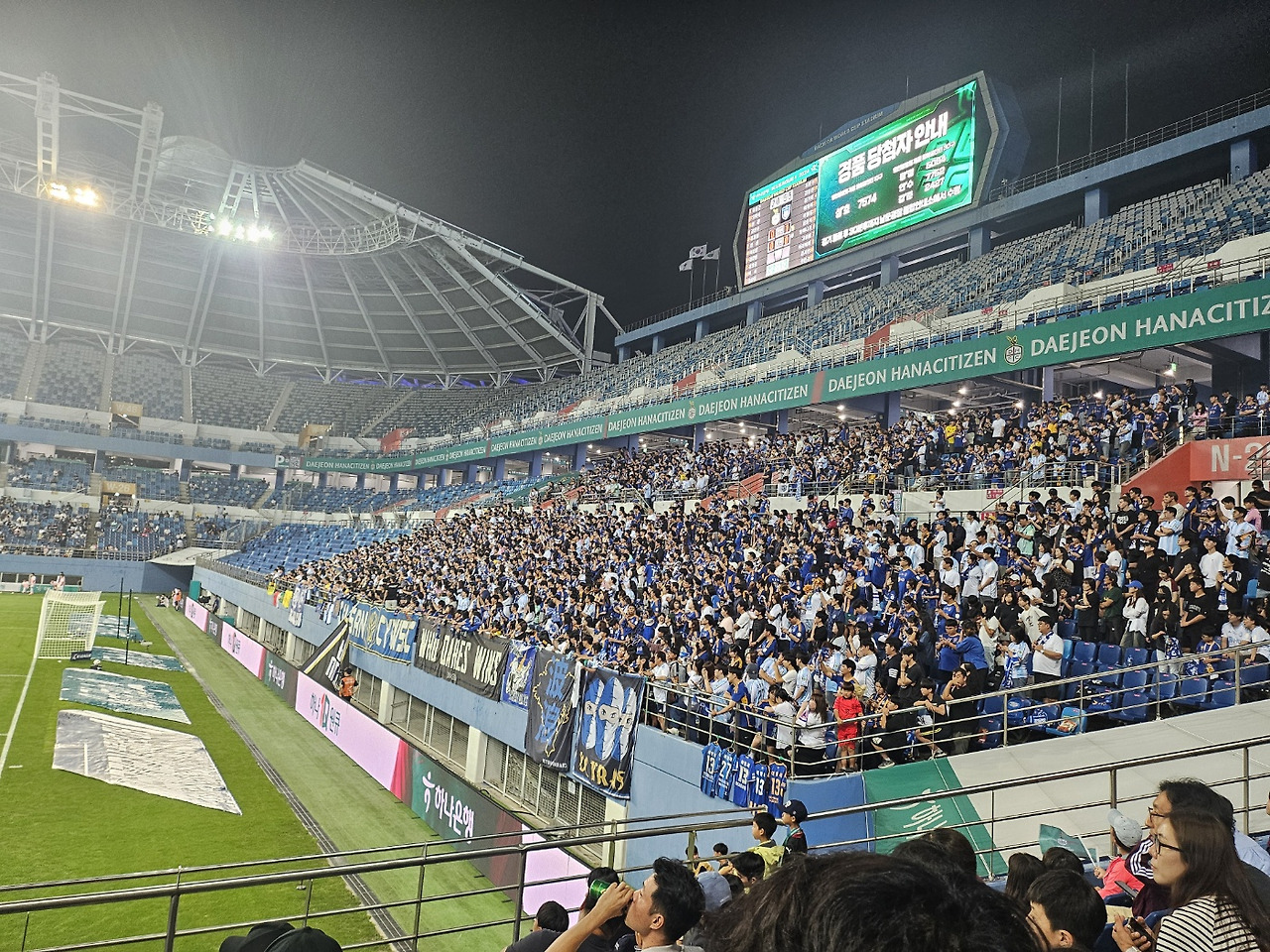 대전이 골을 먹혔다. 경기 진행과는 별개로 문득 갑자기 진지한 생각이 들었다. "야.. 군중속에 있으면 그냥 휘둘린다는 말이 그것이구나". 긍정적이든 부정적이든 장내 열기가 장난이 아니었고 가뜩이나 좌석도 오밀조밀해서 사람들이 다같이 모인 이곳에서 분위기를 온전히 느껴보노라면 옛날 내가 로마에서 태어났더라면 검투사 경기가 이랬겠구나라는 상상도 해보게 되었다.
