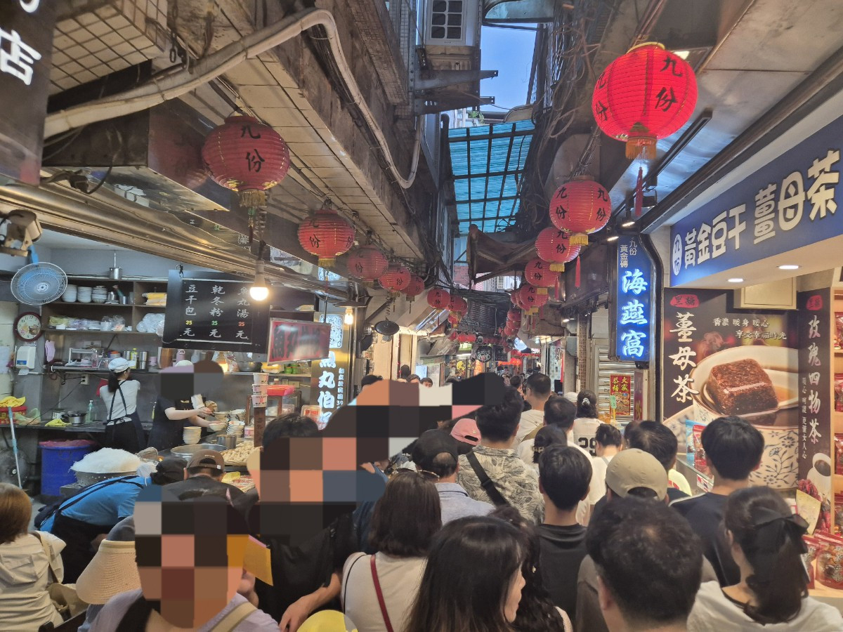여튼 전 세계 사람들, 특히 우리나라 사람들이 엄청 왔다. 열흘 간 한 곳의 여행사에 예약되어 오는 대만 관광객만 하더라도 9천명 정도 된다 한다 이번에. 곳곳에서 사진을 찍느라 정체되어 인내심있게 기다리거나 누군가는 짜증을 내기도 했다. 좌우 양 옆으로 가게들과 어느 곳을 지나가면 호객상들도 많이 보였다. 운전자로써 참 서프라이즈 한 것을 느낀 점은 바로 지우펀의 꼬불꼬불 그 길에 사람들이 꽉 차 있는데 가뜩이나 좁은 산 길에 차들이 인파를 비켜가며 천천히 지나가고 있었다. 그래서 어찌할 꼬라는 너무나 아찔한 역지사지의 생각이 들어버렸다.