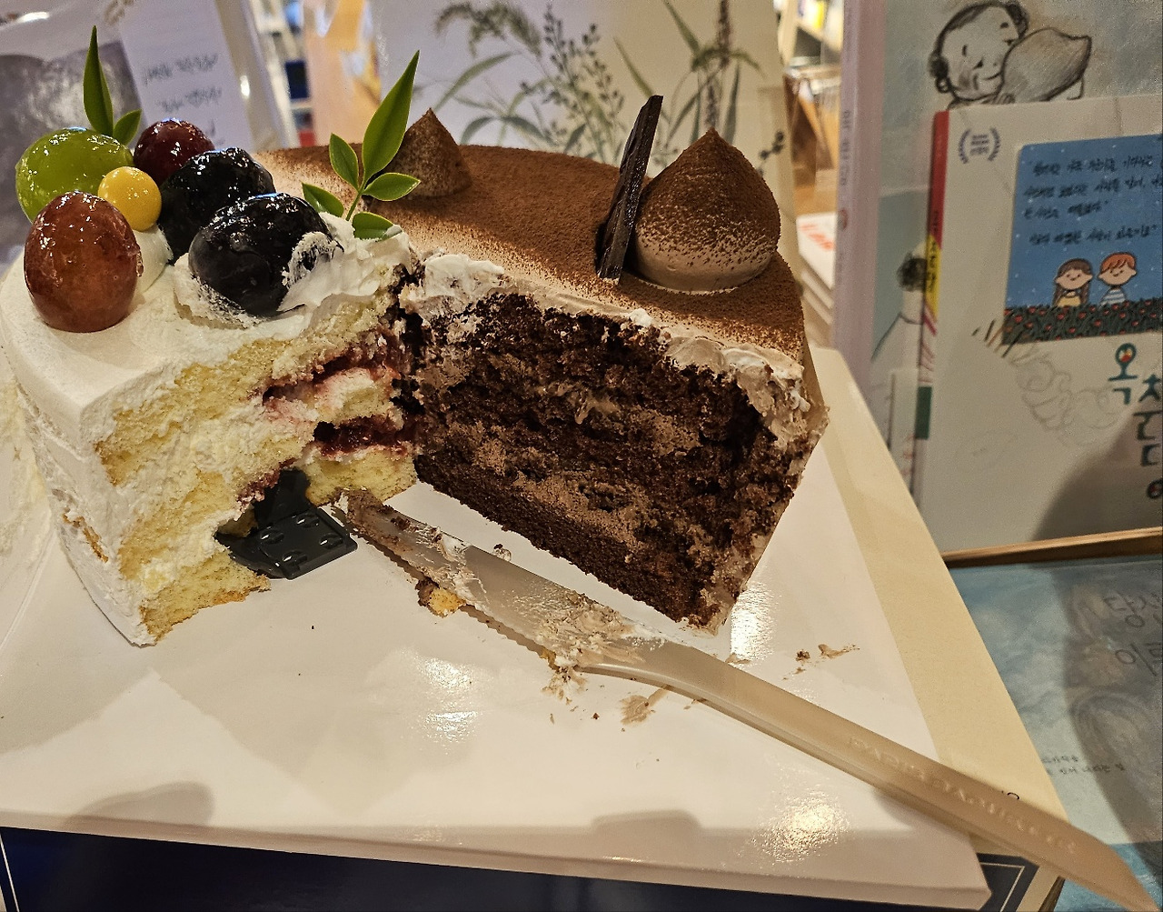 멤버 한분이 케이크를 가져왔다. 오늘도 모임을 진행하기에 앞서 세팅하고 있을 때 참여 멤버 중 한 분이 라디오 출연 축하한다고 케이크를 가져오셨는데 우쭐되는 것보다 감동이 더욱 컸다. 누군가가 신경 써줬다는 것이 상당히 감명 깊었고 순간 울컥함이 몰려들어와 연신 감사하다고 표했다. 덕분에 13명이 케이크로 맛나게 당을 충전하며 따뜻한 분위기 속에서 이야기를 나누고 왔다.