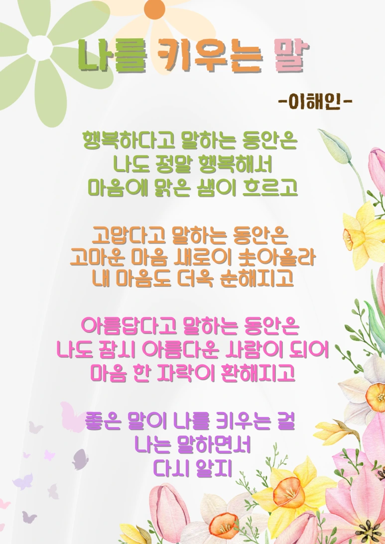 좋은 말 많이 하고, 나를 예쁘게 기르자.