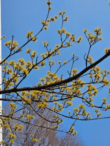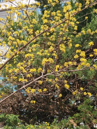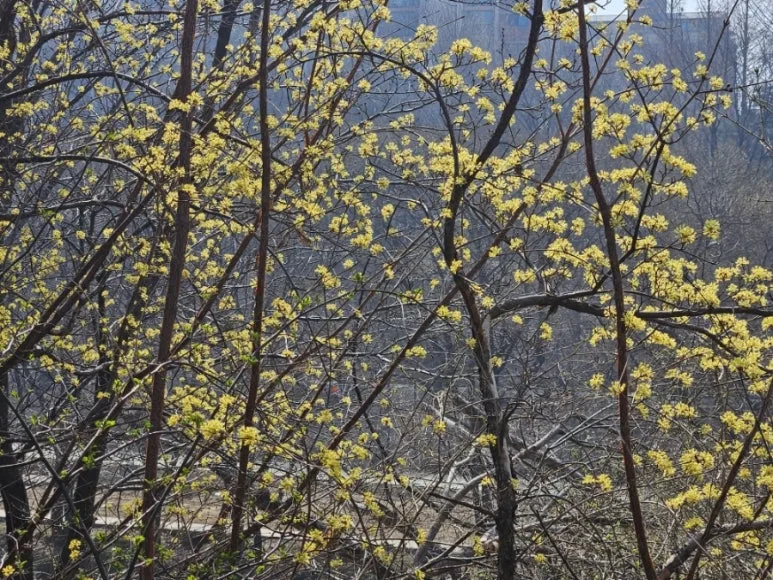 돌아오는 길에 보니, 우리 아파트에도 산수화가 많이 피었어.
