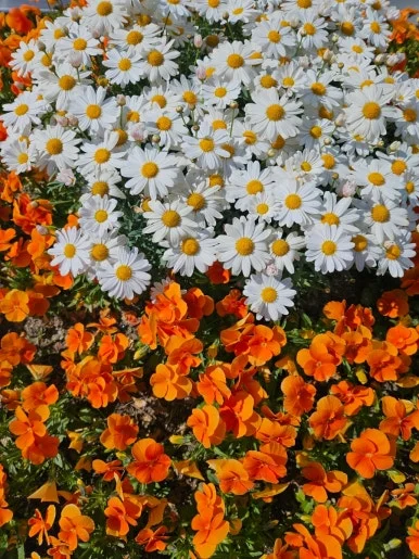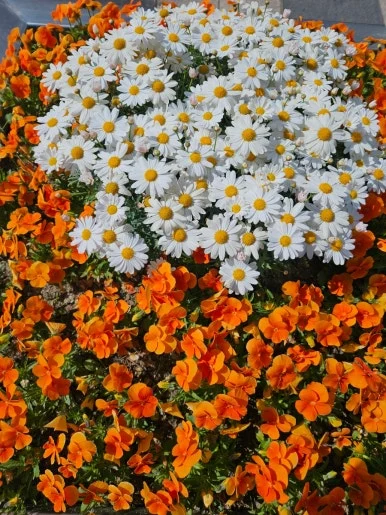 열정적인 주홍 꽃과 깔끔한 흰색 꽃의 대비가 너무 예쁘지?