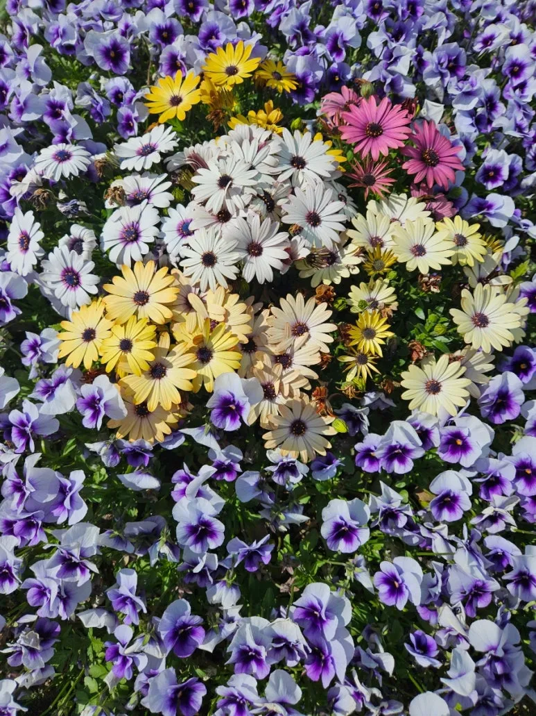 또 옆 화단에는 마가렛트를 보라색 제비꽃이 둘러싸고 있었어.