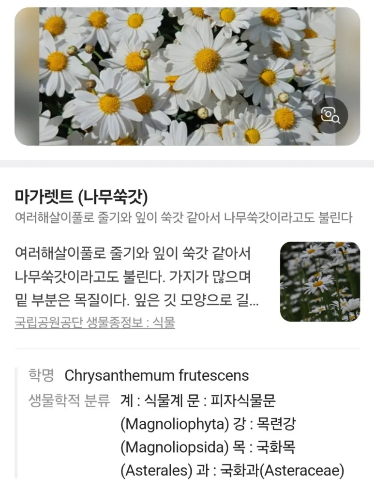 꽃 이름이 과자 이름과 똑같은 '마가렛트'였던 거야.