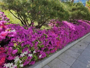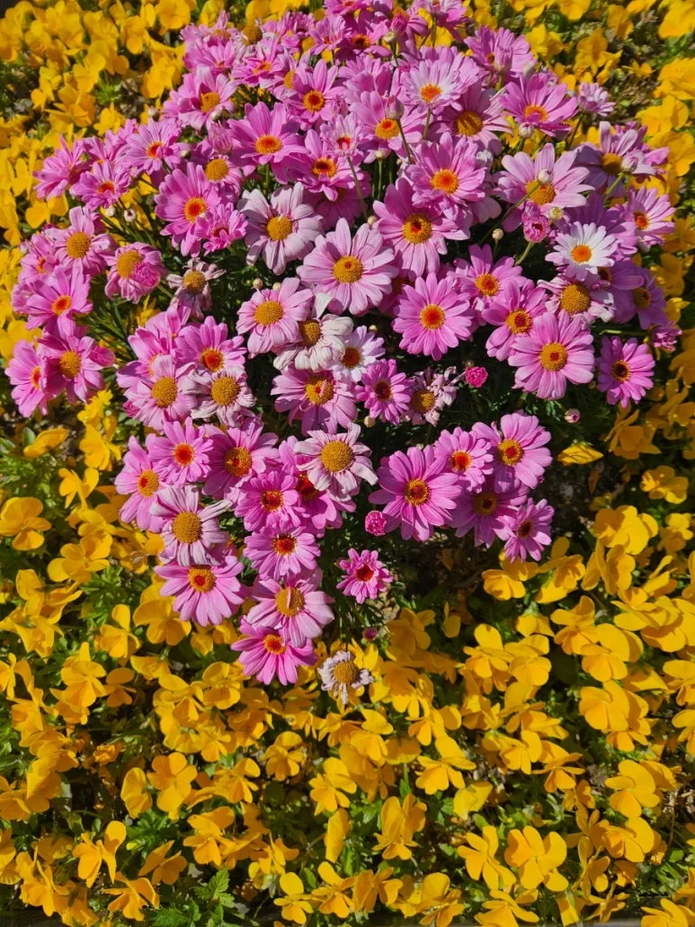 옆에는 노란 꽃과 분홍 꽃의 대비가 있었어.