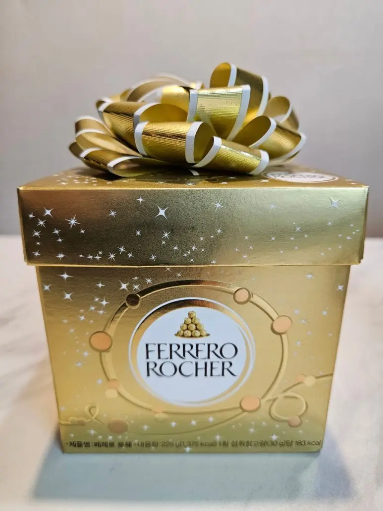 냉큼 내민 것은 반짝이는 황금빛 초콜릿 상자.