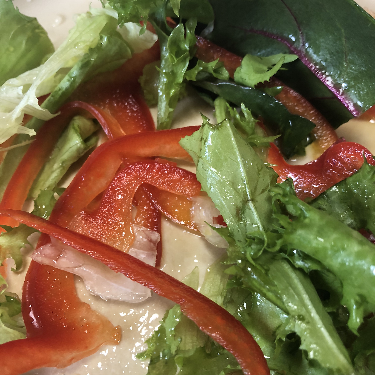 빨간색 파프리카가 아주 얇게 썰어져 연두색의 양상추와 함께 섞여 있는 것이 보기만 해도 싱그럽다. 이 색감만 보면 초여름이 떠오른다. 나는 여기에 레몬즙을 두세 번 두르고 가지고 있던 올리브 오일을 접시 바닥에 깔릴 정도로 넣었다. 올리브 오일 때문에 윤기가 흐른다. 우드색 젓가락으로 그것들을 섞으면 오일이 묻어 조금 무거워진다.
