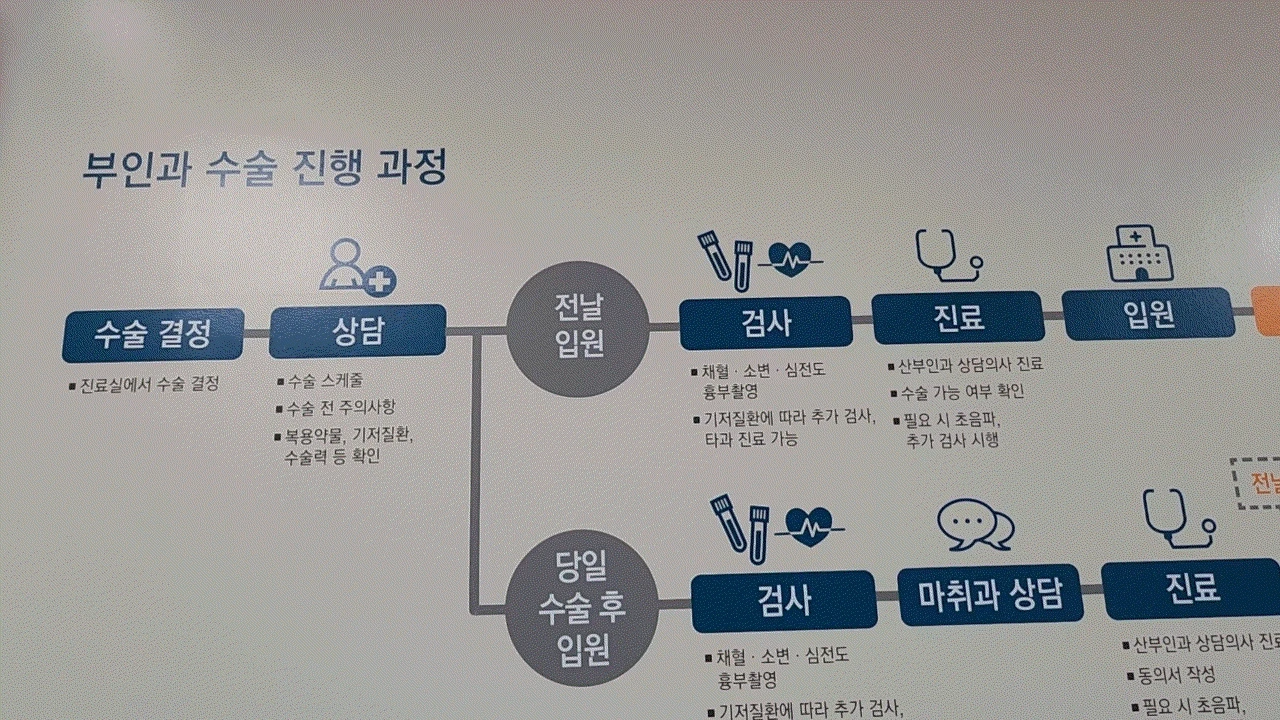 아산병원 벽면에 안내되어 있던 부인과 수술 진행 과정