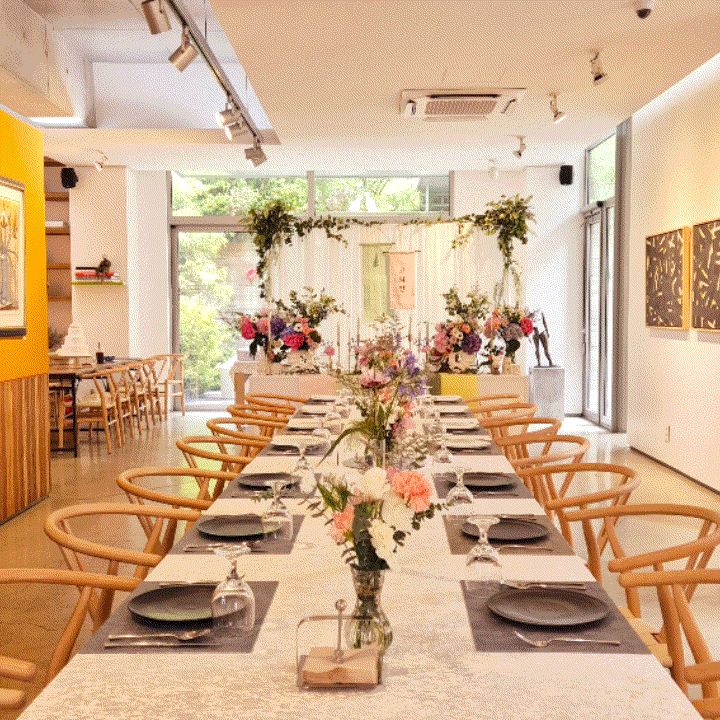 동생도, 나도 강력한 J형 인간이라서 이미 1주 전에 만반의 준비를 다 해두었었다. 파티 당일날 비가 온다는 예보가 있어서 걱정했는데 다행히 날씨도 화창하고 예뻤다. 나와 동생은 답례품 셋팅 및 파티 준비 상황 체크를 위해서 좀 더 일찍 갔는데, 마침 상차림이 진행 중이었다.