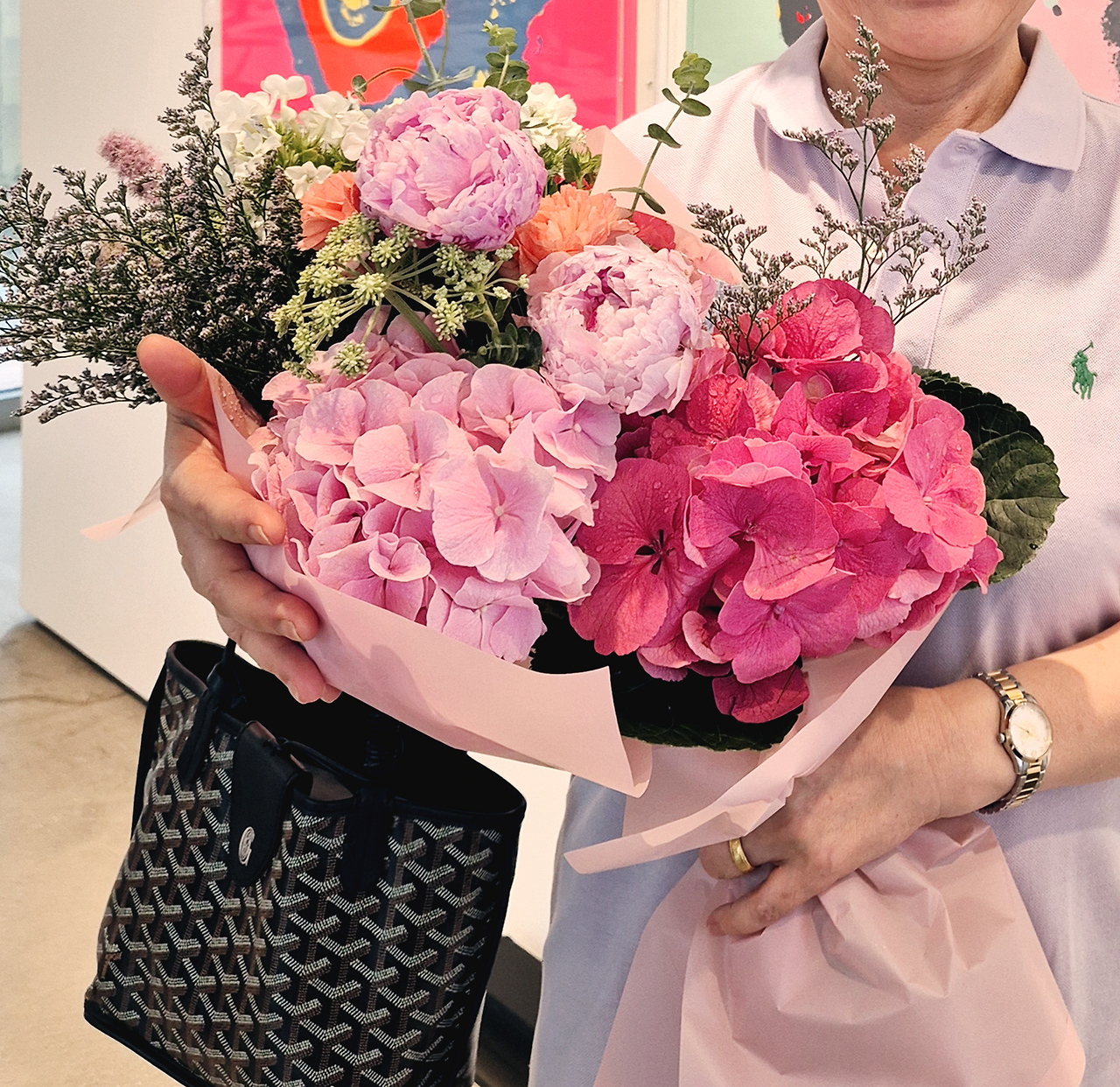 우리가 식사를 하는 동안 상차림을 정리하면서 떡과 케익, 과일 등을 포장해 주시고 커다란 꽃다발도 만들어주신 덕분에 가족 단위로 꽃다발도 선물로 챙겨보낼 수 있었다. 안 그래도 다들 꽃이 너무 예뻐서 버리면 아까울 것 같다고 생각했는데, 이렇게 예쁘게 꽃다발까지 만들어 주다니 기쁘다면서 다들 기쁘게 꽃다발을 받아갔다.