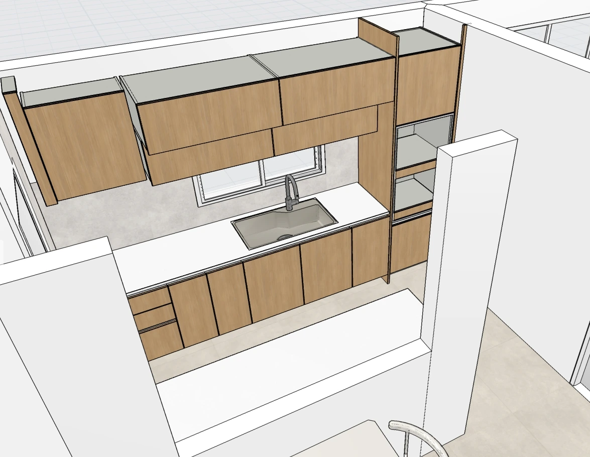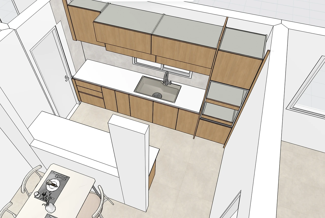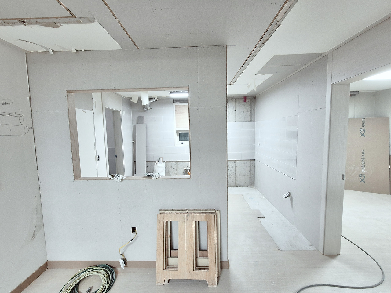 주방이 가장 품이 많이 들었던 것 같다. 나는 주방 쪽에 창을 뚫어놓은 것 같은, 오픈 주방형 가게를 운영하는 레스토랑처럼 가벽을 세우고 싶다는 요구사항을 전달했다. 실장님은 이런 형태는 처음이라며 다소 난감해 하면서도 다음과 같은 구성안을 제안해주셨다.