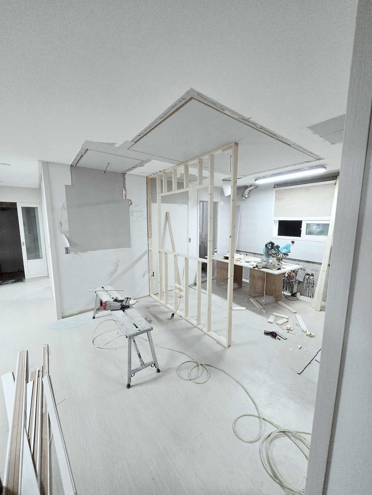 세입자가 집을 만신창이로 만들어놨을 거라는 가정 하에 그럴바엔 새로 고치자는 생각 + 우리집 더부녀인 동생의 가족 합류로 인해 인테리어를 결심했다.