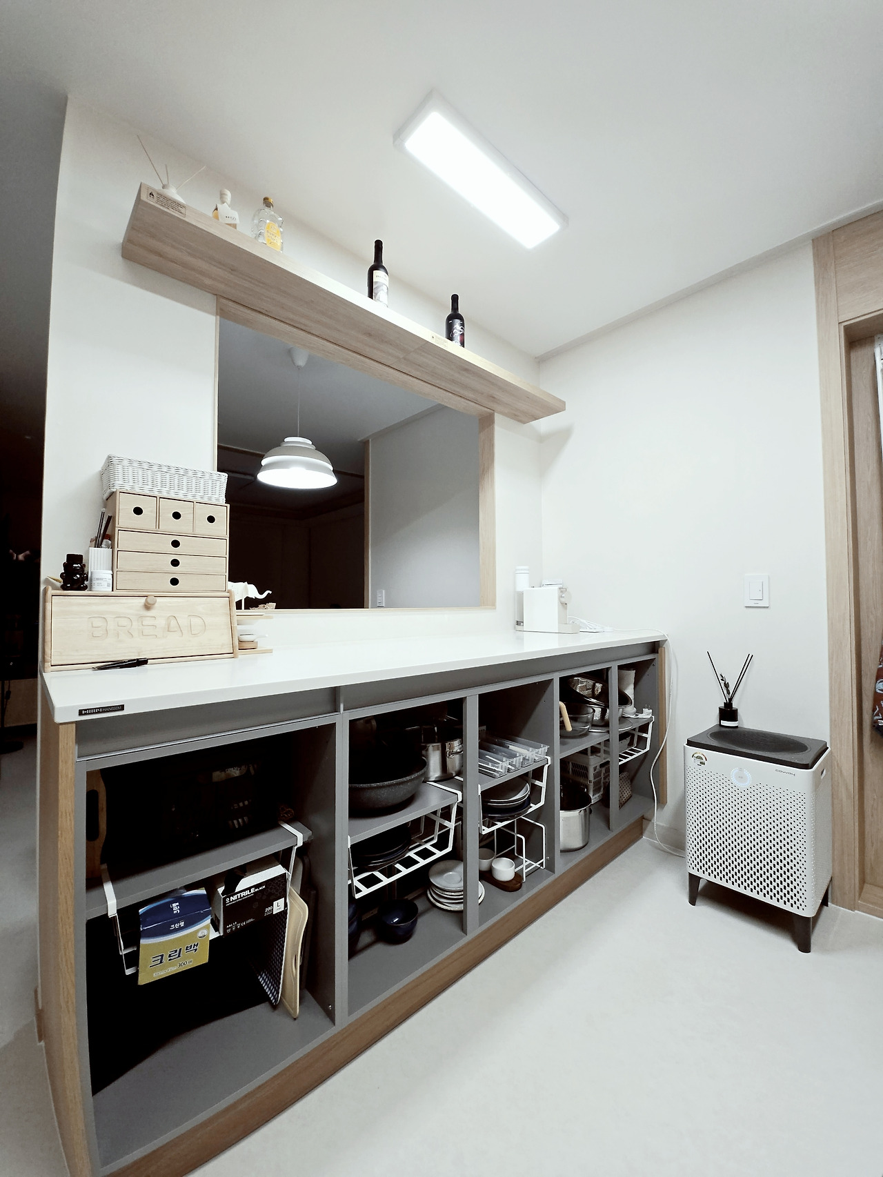 가족이 소통하고 함께 오래 있는 공간이 되고자 했던 우리의 의도대로 우리집은 멋지게 변신했다. 새로 구매한 가전이나 인테리어 소품이나 도구 등을 제외하면 3,000만원 정도의 비용이 들었다.