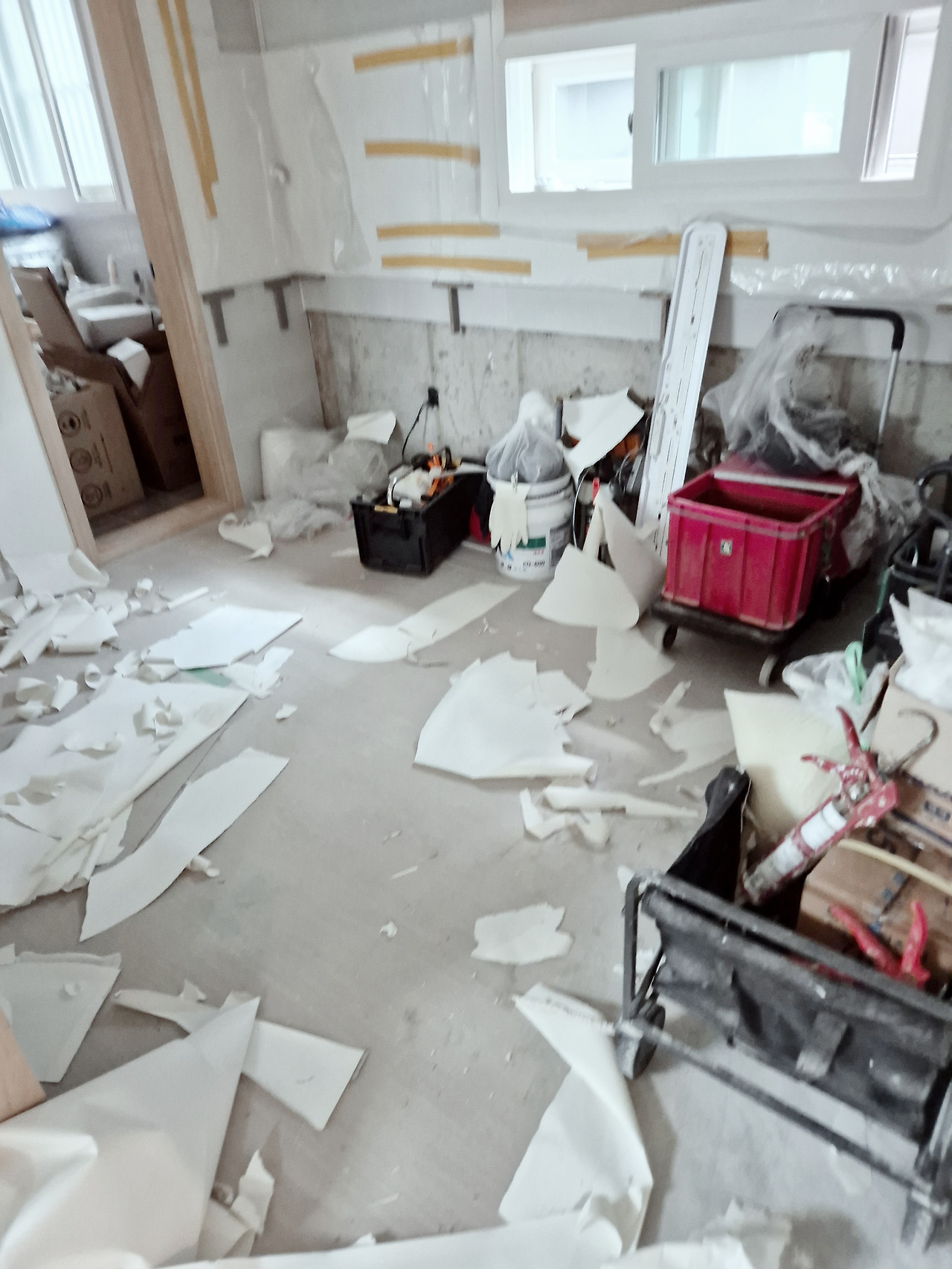 <2. 강아지들의 쓸개골 탈구 위험을 최소화해야 한다.> 항목으로 인해 바닥을 따로 하고, <5. 멀쩡한 부분은 괜히 바꾸지 말고 깨끗하게 잘 쓰자.> 항목으로 인해 화장실이나 베란다, 현관 쪽의 인테리어는 빠지는 공사라서 비용이 많이 발생하지 않아서 남는게 별로 없으셨을 것 같은데도, 성실하게 최선을 다해서 해주신다는 것이 매번 연락 때마다 느껴졌다. 진심이 와닿게 한다는 건 어려운 일인데 그걸 잘 해내는 사람을 만나다니 운이 좋다는 생각이 들었다.